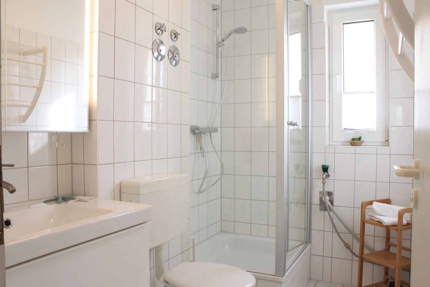 Die Wohnung bietet Ihnen außerdem zwei Schlafzimmer mit Doppelbett oder zwei Einzelbetten. Genügend Stauraum für Ihre Garderobe ist ebenfalls vorhanden. Das Badezimmer verfügt über eine Dusche, einen Waschtisch und WC.