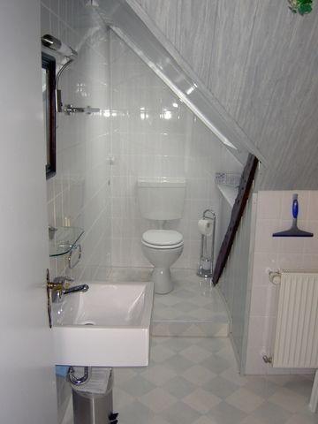 Im Tageslichtbadezimmer steht Ihnen eine Dusche, ein Waschtisch und ein WC zur Verfügung.
