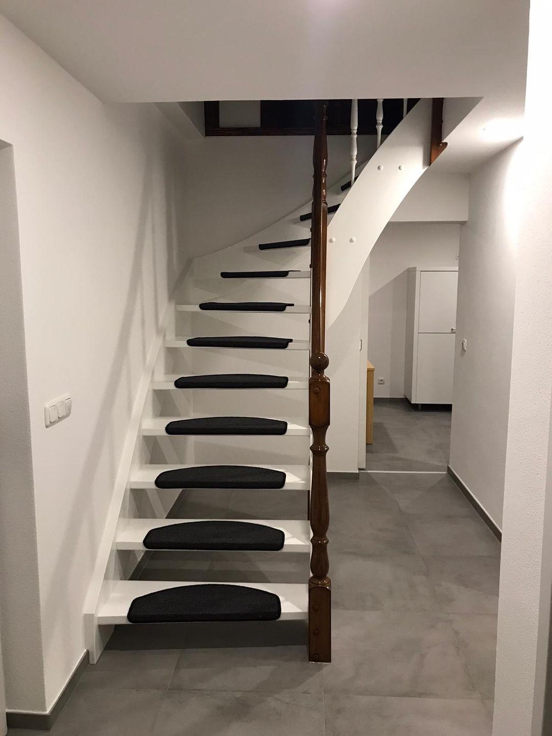 Über eine Treppe gelangen Sie in das Obergeschoss der Wohnung, wo sich zwei separate Schlafzimmer mit komfortablem Doppelbett und zwei Einzelbetten befinden. Genügend Stauraum für Ihre Garderobe ist ebenfalls vorhanden.