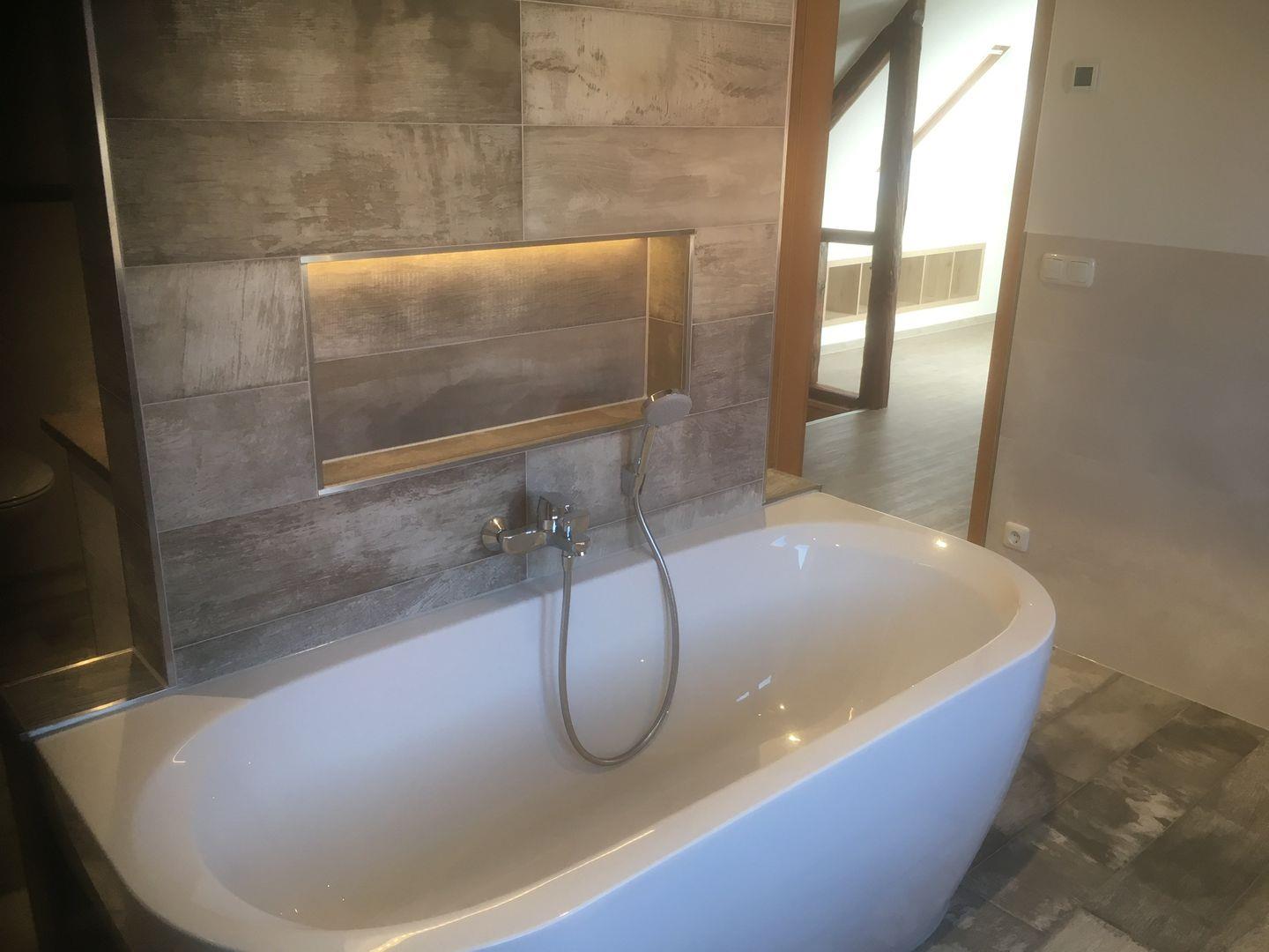 Weiterhin verfügen Sie hier über das luxuriöse Badezimmer mit Fenster, welches mit Badewanne, Dusche, Waschtisch, Bidet, beheizbarer Sitzmöglichkeit und Fußbodenheizung ausgestattet ist und zum Relaxen einlädt.