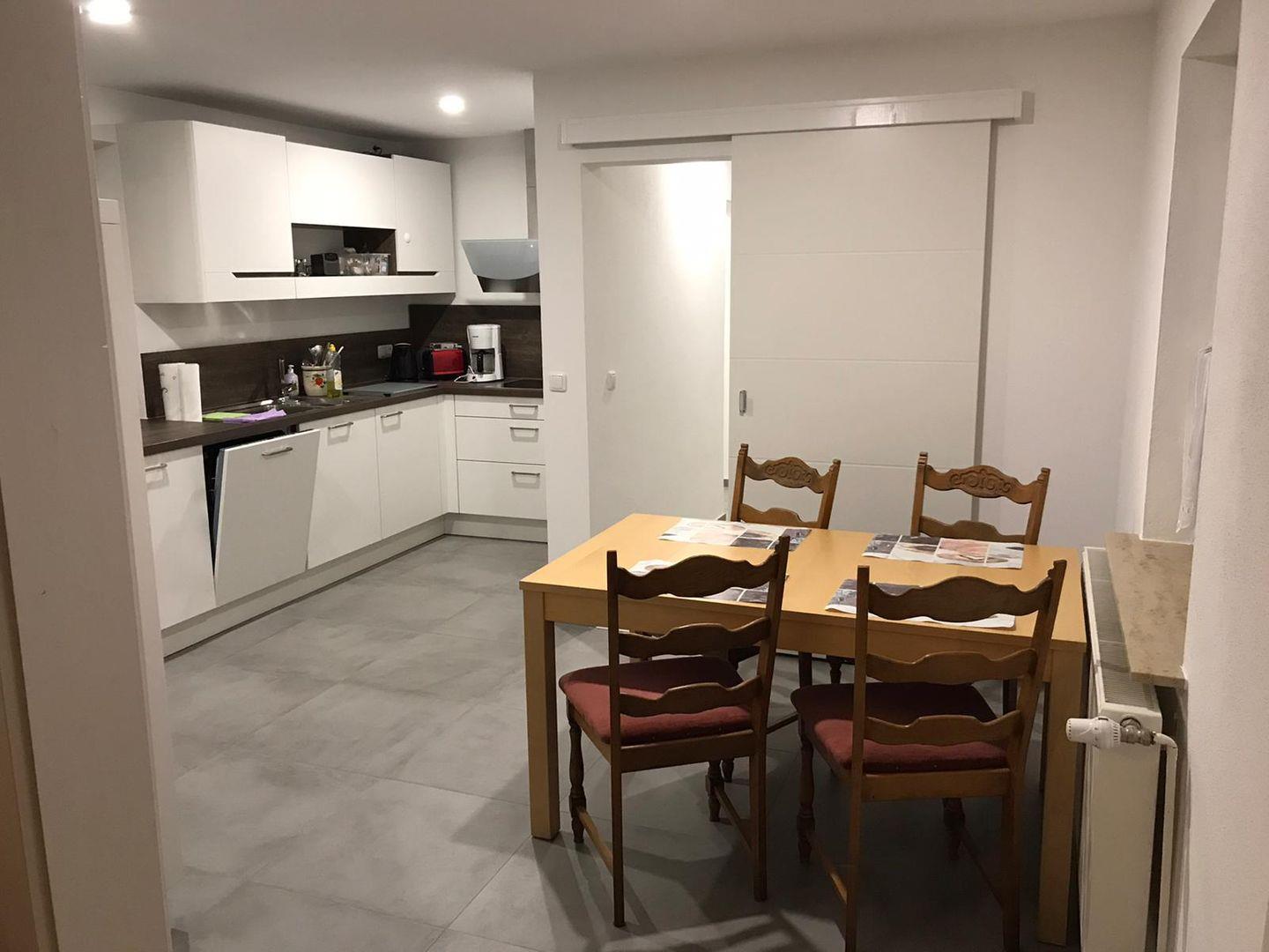 Im Erdgeschoss befinden sich einer kleiner Flur mit Garderobe, die moderne, hochwertig ausgestattete Küche mit Essbereich, das gemütliche Wohnzimmer mit TV und Zugang zum beheizbaren Wintergarten mit Blick in die Natur und kleiner Terrasse, sowie das schicke Gästebad mit Dusche.