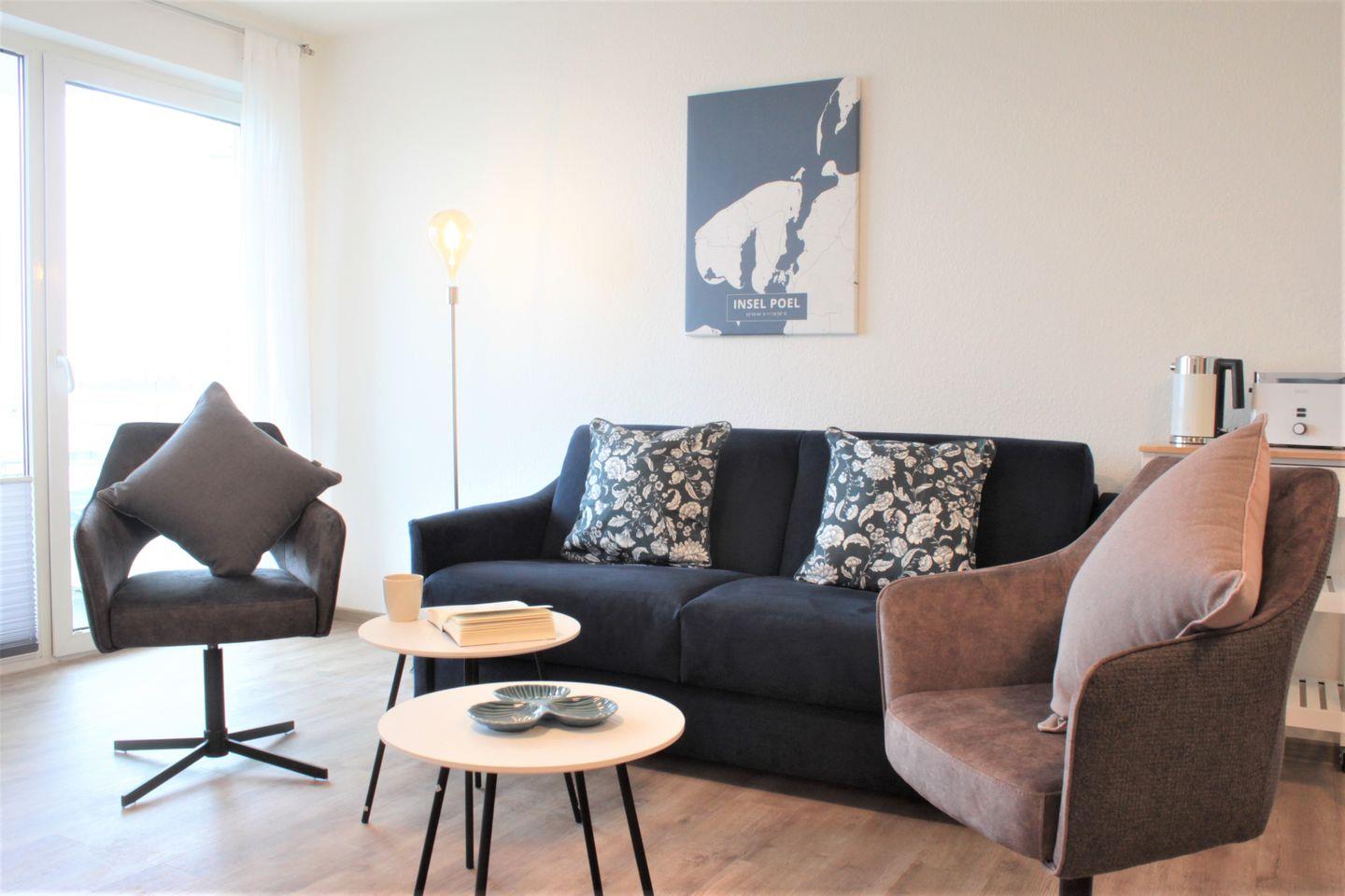 Die Appartementanlage „Residenz am Yachthafen“ befindet sich im Kern des kleinen Örtchens Kirchdorf. Die Appartements verteilen sich auf drei Gebäude mit jeweils zwei Etagen. Zu jedem Appartement gehört ebenfalls ein Pkw - Parkplatz direkt an der Appartementanlage und ein gemeinschaftlich genutzter Fahrradabstellraum im Keller der Appartementanlage. Direkt am Hafen gelegen, bieten Ihnen die Ferienwohnungen alle einen Balkon mit teilweise Meerblick. Hier erleben Sie das bunte Treiben am Hafen von Kirchdorf hautnah und genießen frischen Fisch direkt vom Kutter oder in den umliegenden Restaurants. In den Sommermonaten laden verschiedene Kunst- und Handwerkermärkte zum Schnökern und Bummeln ein. In der nahegelegenen Hansestadt Wismar kommen alle Kultur-, Architektur- und Shoppinginteressierte auf Ihre Kosten. Sie erreichen die UNESCO Welterbestadt entweder mit dem Pkw, dem Fahrrad oder auf dem Wasserweg mit dem Ausflugsschiff, das direkt am Hafen in Kirchdorf mehrmals am Tag ablegt. Um einen Tag am Strand zu genießen, stehen Ihnen mehrere Strände auf der Insel Poel, in alle Himmelsrichtungen verteilt, zur Verfügung. Dazu empfehlen wir Ihnen, dass eigene Fahrrad mitzubringen oder über unsere Agentur „Poeler Tourismus Service“ zu mieten. In wenigen Minuten erreichen Sie mit dem Pkw oder Fahrrad verschiedene Einkaufsmöglichkeiten, Restaurants und Cafés. Außerdem befinden sich öffentliche Ladesäulen für E-Autos auf dem Parkplatz des Hafens.