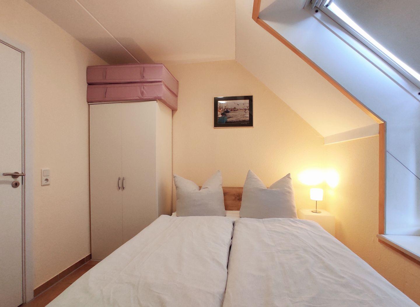 Die Wohnung verfügt über zwei Schlafzimmer, die Ihnen und Ihren Mitreisenden erholsame Nächte garantieren. Im ersten Schlafzimmer erwartet Sie ein großzügiges Doppelbett (180 x 200 cm), das von einem geräumigen Kleiderschrank ergänzt wird. Das zweite Schlafzimmer ist mit einem gemütlichen kleinen Doppelbett (140 x 200 cm) ausgestattet.