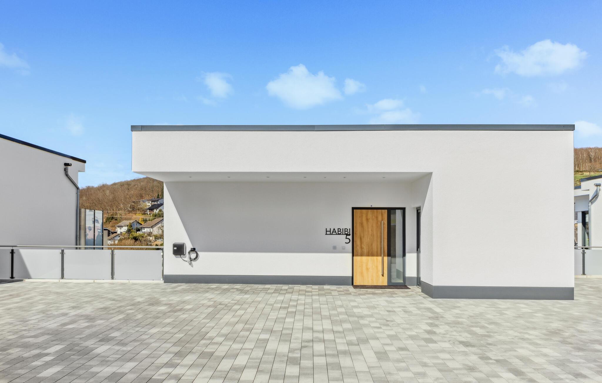 Nyd moderne arkitektur, vid udsigt over naturen og skønne udflugtsmål i dette feriehus.