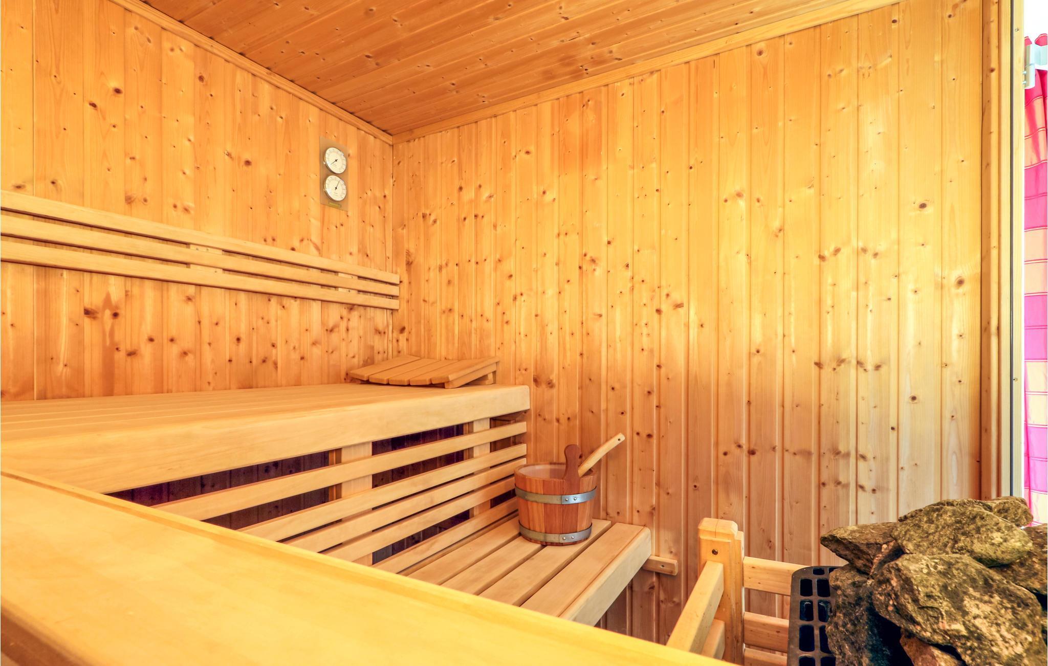 Huset fordeler sig over to etager og har med fire soveværelser plads nok til en afslappende ferie for syv personer og et kæledyr. I stueetagen er der en dejlig opholdsstue, et veludstyret køkken, et badeværelse og en sauna. De fire soveværelser og et andet badeværelse ligger på første sal i huset. Det smukke opholdsstue med en stor sofa og et langt spisebord lægger op til hyggelige aftener med familie eller venner.