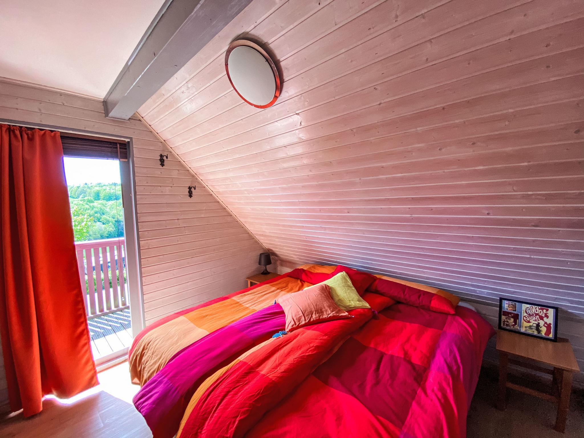 "LoLa", 4-room house 75 m2 on 2 levels. Cosy furnishings: living/dining room with open-hearth fireplace and satellite TV (flat screen), DVD. Exit to the terrace. 1 room with 1 double bed. Open kitchen (oven, dishwasher, 4 ceramic glass hob hotplates, kettle, microwave, electric coffee machine). Shower/WC, sep. WC. Upper floor: (spiral staircase), 1 room with sloping ceilings with 1 double bed. Exit to the balcony. 1 room with sloping ceilings with 2 beds and hand-basin. Exit to the balcony. Electric heating. Small balcony, terrace partly roofed. Terrace furniture, balcony furniture, barbecue. Beautiful view of the lake. Facilities: children's high chair, baby cot. Internet (WiFi, free). Please note: non-smoking house. Smoke alarm, fire extinguisher. Na parterze pokoje polaczone sa schodami (pólpietra).