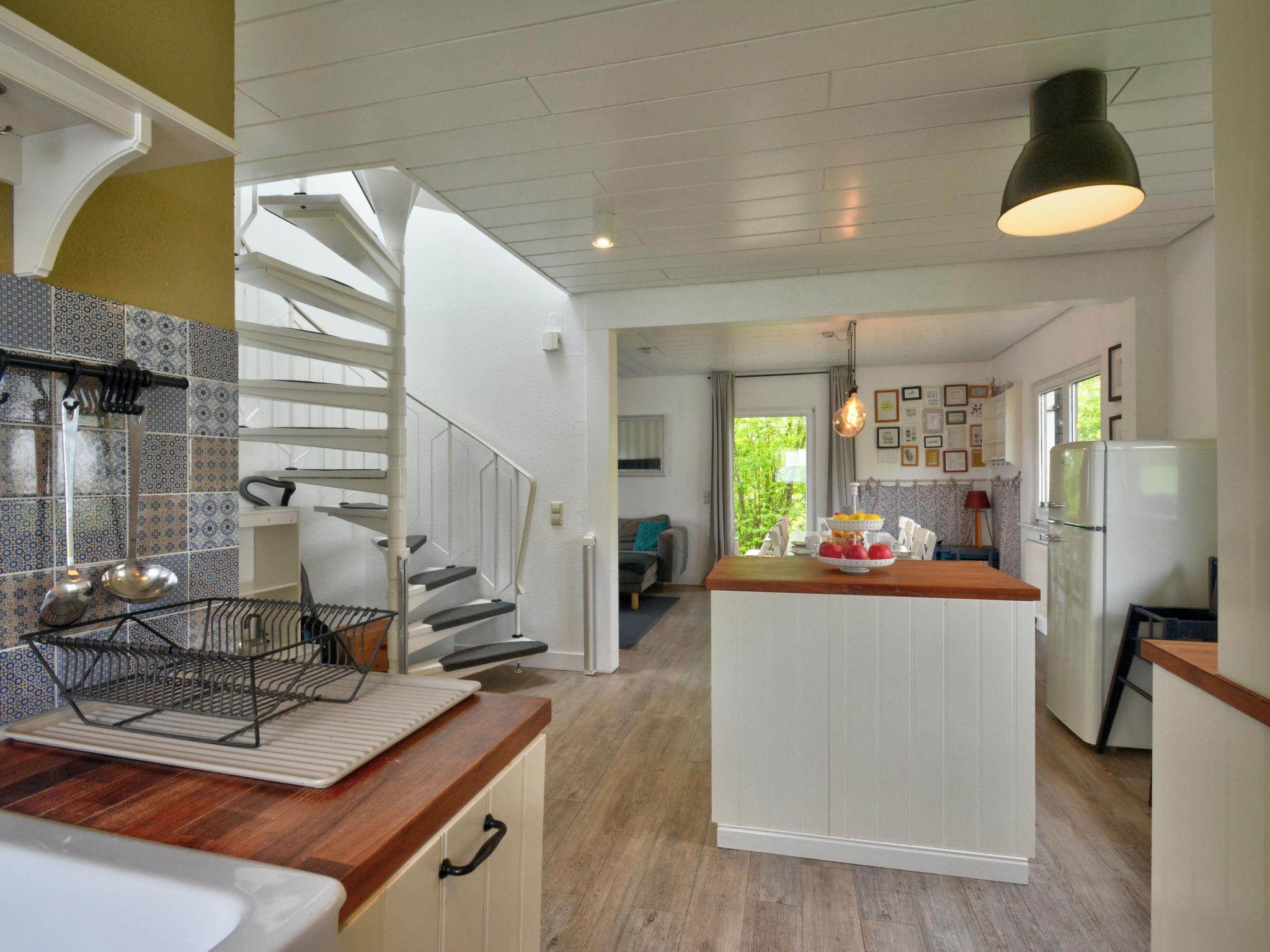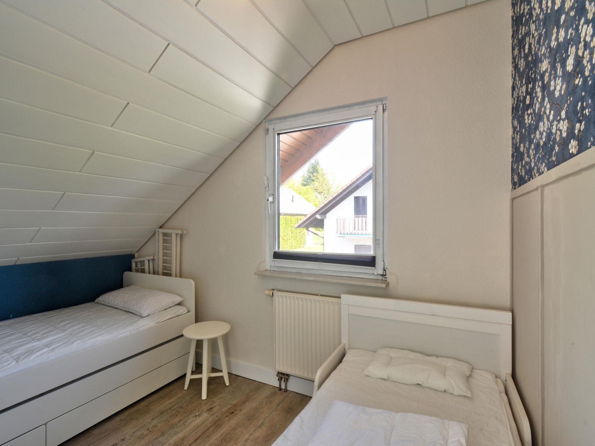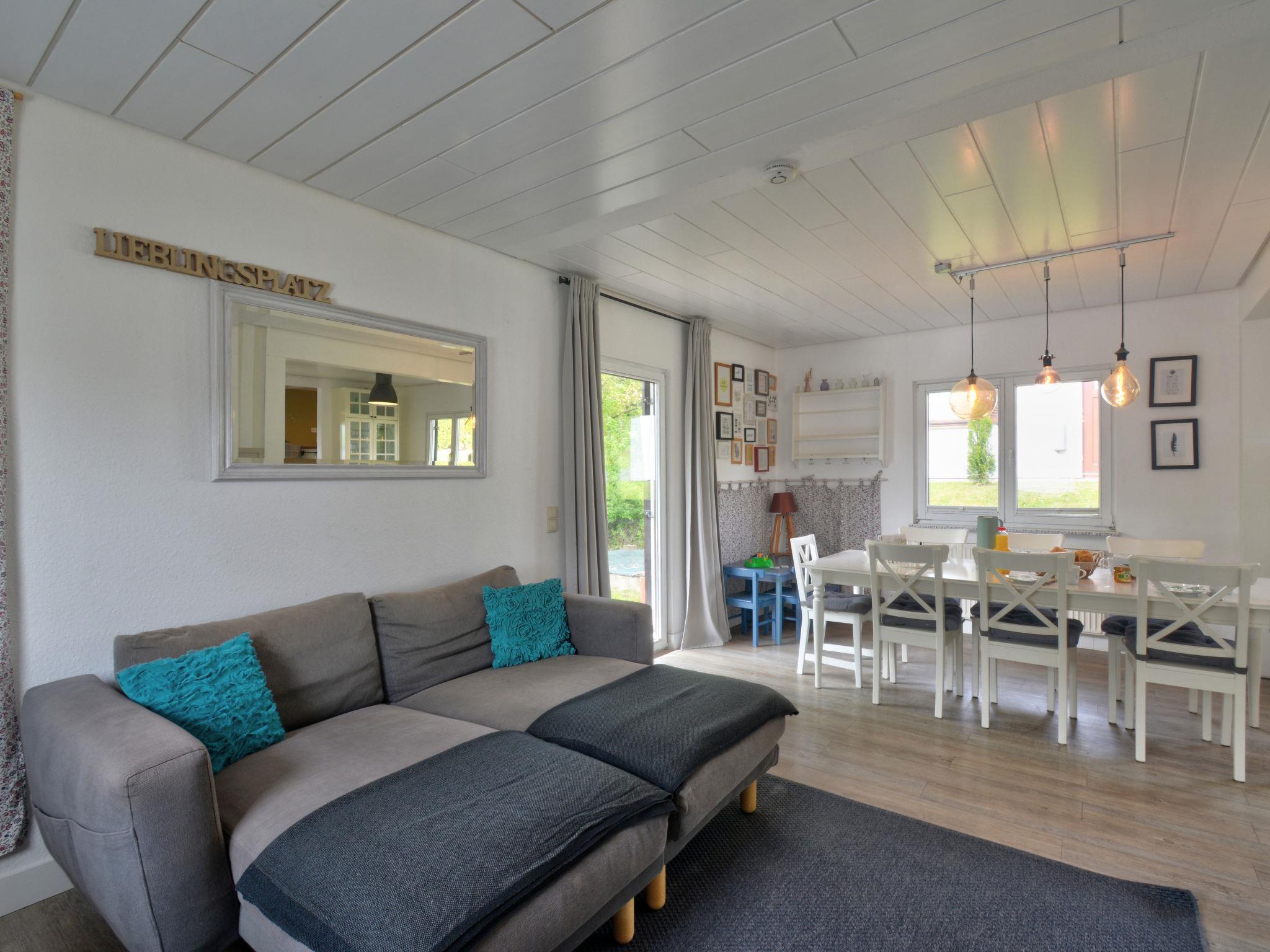 "Dorf 4/Haus 10", 5-room house 102 m2 on 2 levels, on the ground floor. Object suitable for 6 adults + 2 children. Modern and tasteful furnishings: living/dining room 40 m2 with satellite TV, flat screen and hi-fi system. Exit to the terrace, to the patio. Open kitchen 7 m2 (oven, dishwasher, 4 ceramic glass hob hotplates, microwave, freezer, electric coffee machine). Shower/WC. Upper floor: (spiral staircase), 1 room 10 m2, with sloping ceilings with 1 bed (120 cm, length 60 cm), 1 double bed (180 cm, length 200 cm), hand-basin. Exit to the balcony. 1 room 10 m2, with sloping ceilings with 1 bed (70 cm, length 140 cm), 1 double bed (180 cm, length 200 cm). Exit to the balcony. 1 room with sloping ceilings with 1 bed (70 cm, length 140 cm), 1 pull-out bed (2 pers. 2 x 90 cm, length 200 cm). 1 room with sloping ceilings with 1 double bed (180 cm, length 200 cm), hand-basin. Bath/WC with corner bath. Gas heating, boiler (100 litres). Small balcony 5 m2, terrace 20 m2 partly roofed, lawn 200 m2. Terrace furniture, balcony furniture, barbecue (portable). Facilities: washing machine, dryer, children's high chair, hair dryer. Internet (WiFi, free). Please note: suitable for families. Non-smoking house. Smoke alarm, fire extinguisher. Smart-TV. Bookings accepted for holiday purposes only.
