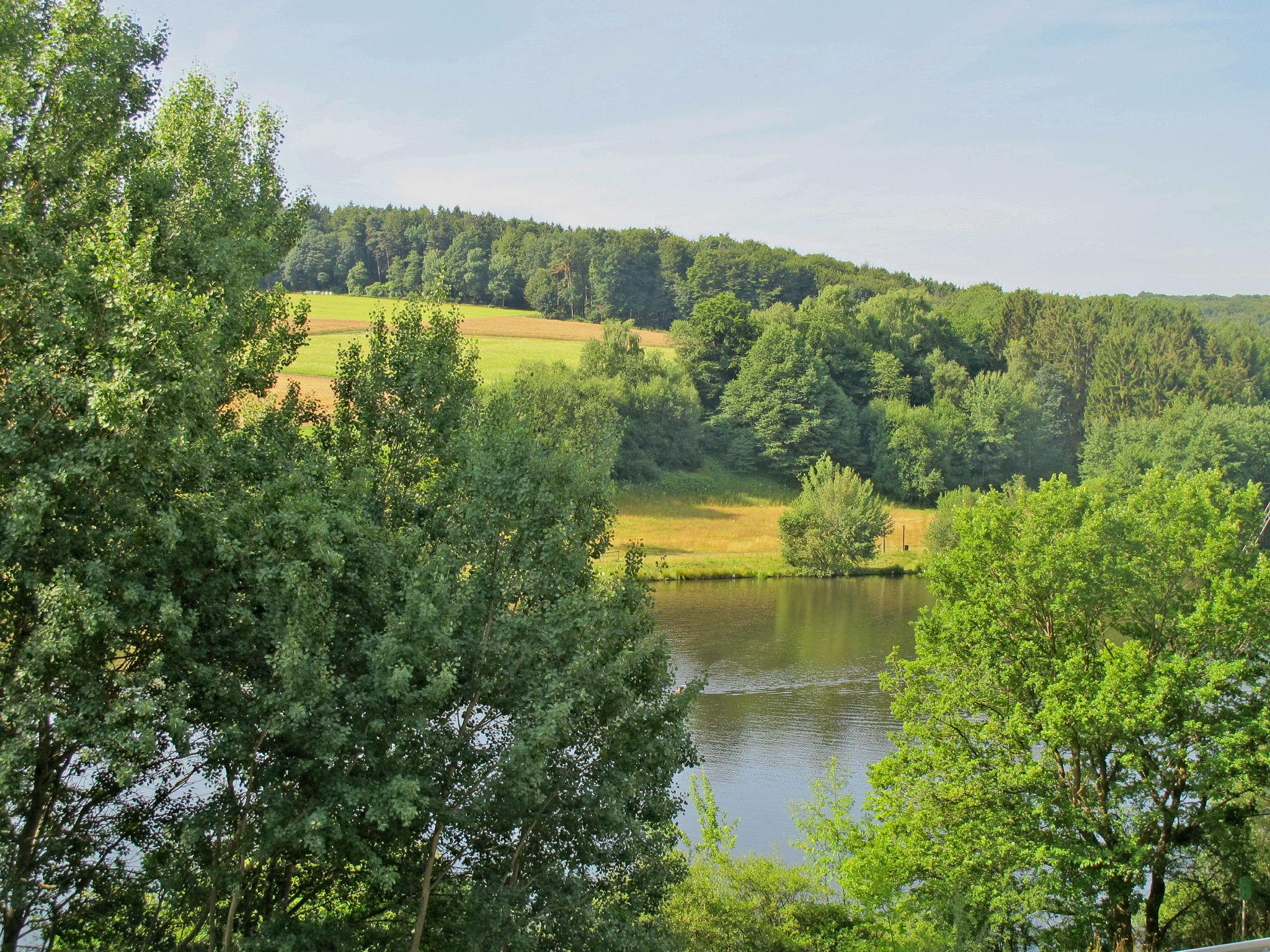 Holiday development "Seepark Kirchheim". 139 houses in the resort. 4 km from the centre of Kirchheim, on the outskirts, 10 km from the centre of Bad Hersfeld, 34 km from the centre of Fulda, on a slope, 300 m from the lake. Private: property 1'360 m2. 40 m long motor access to the grounds. Supermarket 4 km, bus stop 500 m, grass beach 750 m, outdoor swimming pool 4 km. Golf course (18 hole) 4 km. The houses are grouped as four 'villages' around the reservoir (10 hectares of water surface) with a bathing area, sunbathing lawn and waterskiing facility. Circular path around the lake for walking and jogging. On the neighboring campsite (approx. 100-900 m, depending on the location of the house) there is a bread roll service and coin-operated washing machine/dryer.