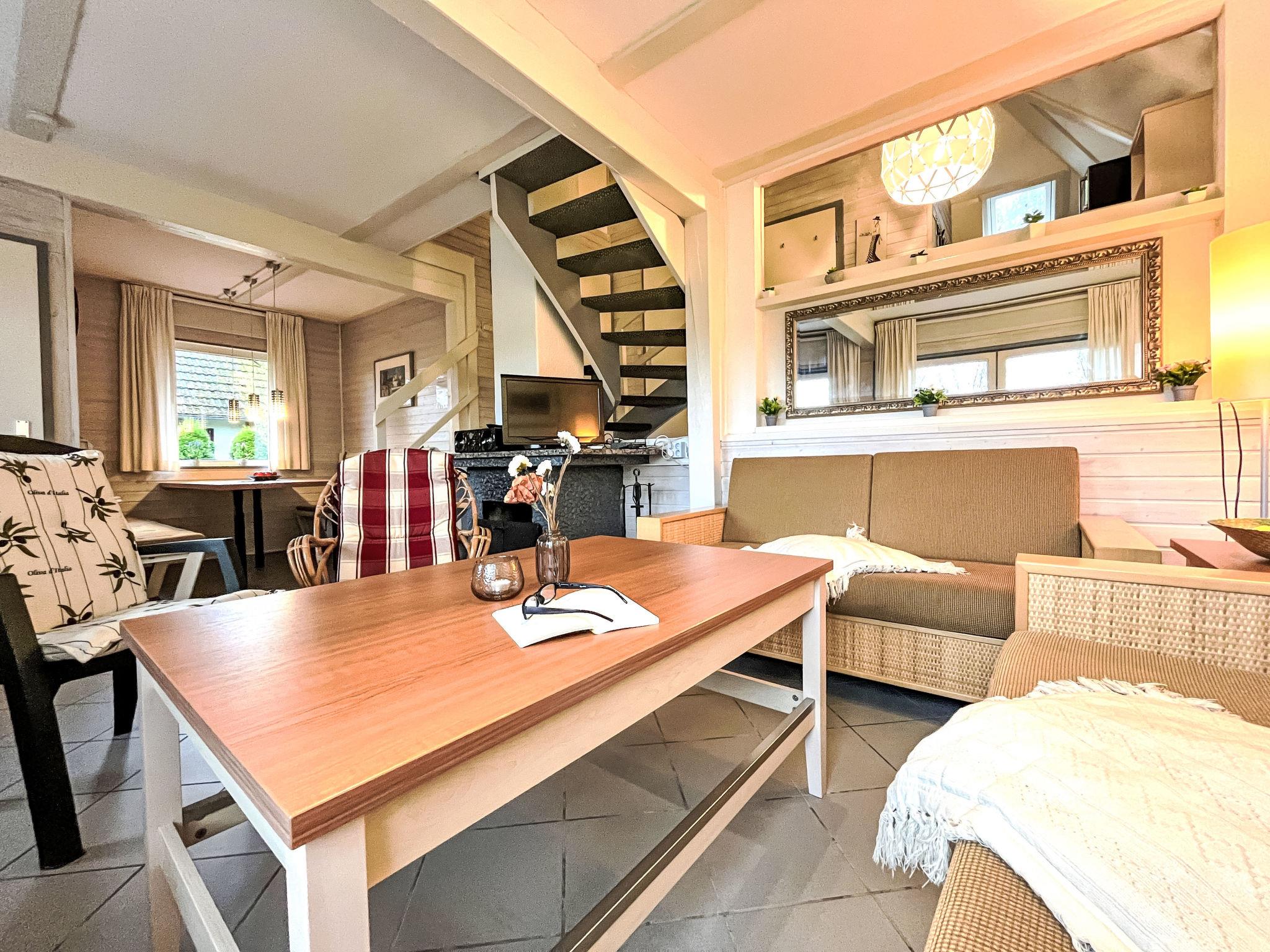 "Seesicht-Dorf 1 / Haus 11", 4-room house 80 m2 on 2 levels. Bright, cosy furnishings: living/dining room with Scandinavian wood stove, dining table, satellite TV, radio and CD-player. Exit to the terrace. 1 room with 2 beds. Small, open kitchen (dishwasher, 4 ceramic glass hob hotplates, toaster, kettle, electric coffee machine, combination microwave). Shower/WC, sep. WC. Upper floor: 2 rooms with sloping ceilings, each room with 2 beds. Exit to the balcony. Electric heating. Balcony, terrace 20 m2. Terrace furniture, barbecue. Partial view of the lake. Facilities: children's high chair, baby cot. Internet (WiFi, free). Parking (2 cars) at the house. Please note: non-smokers only. Smoke alarm. A Senseo pad machine is available, without coffee pads.