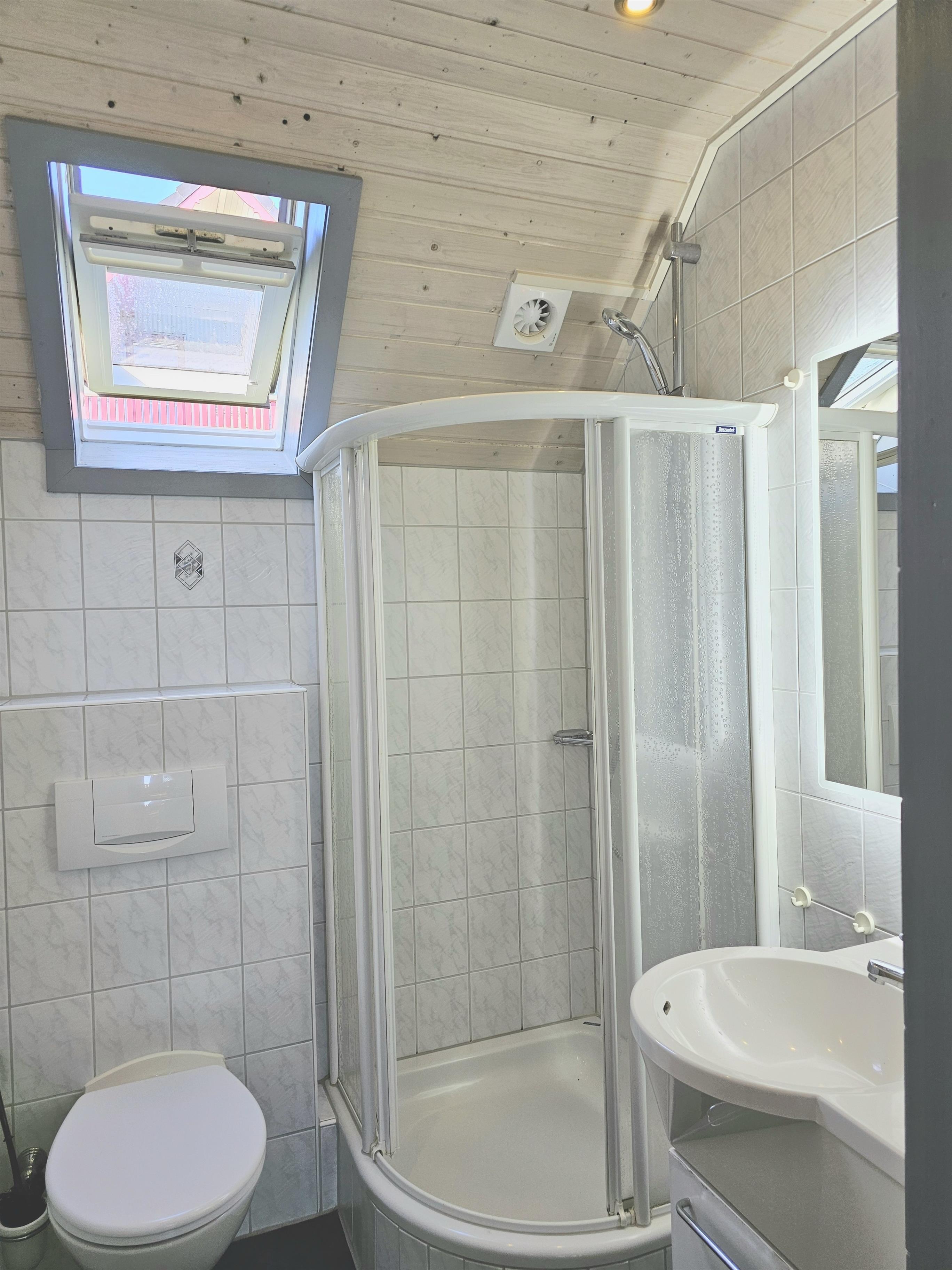 Das Duschbad ist zeitlos hell. Ferienhaus "Schmetterling" im See Ferienpark Kirchheim / Rotkäppchen-/ Nordhessen-/Bergland