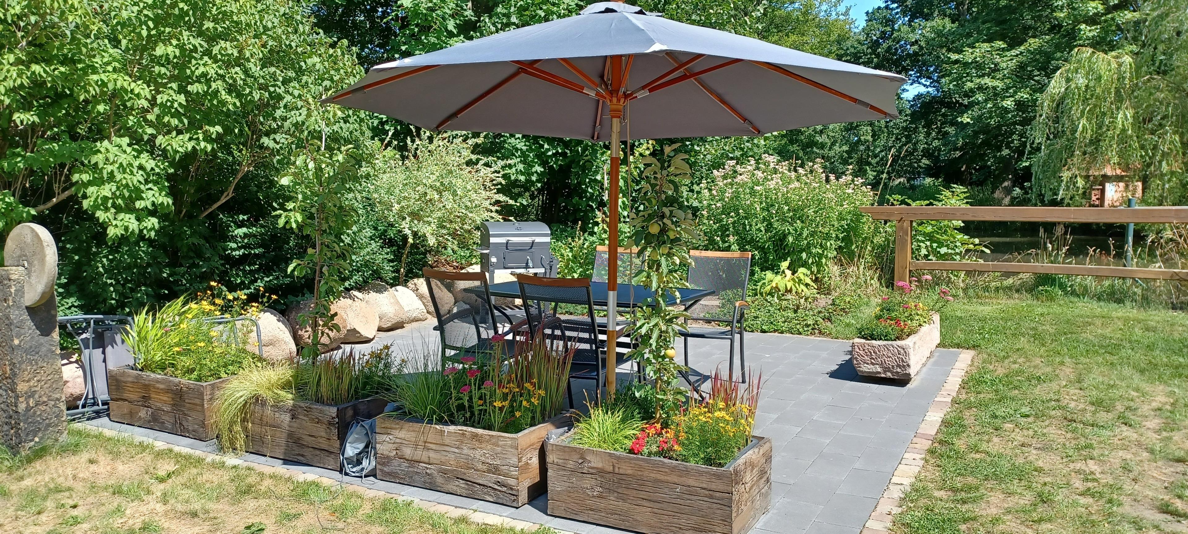 Direkt am Teich stehen eine Terrasse und ein Grillplatz zur Verfügung. Die Leihfahrräder sind im Mietpreis enthalten und sind ideal zur Erkundung der Region. Kinder können in der direkten Nachbarschaft Ponyreiten.