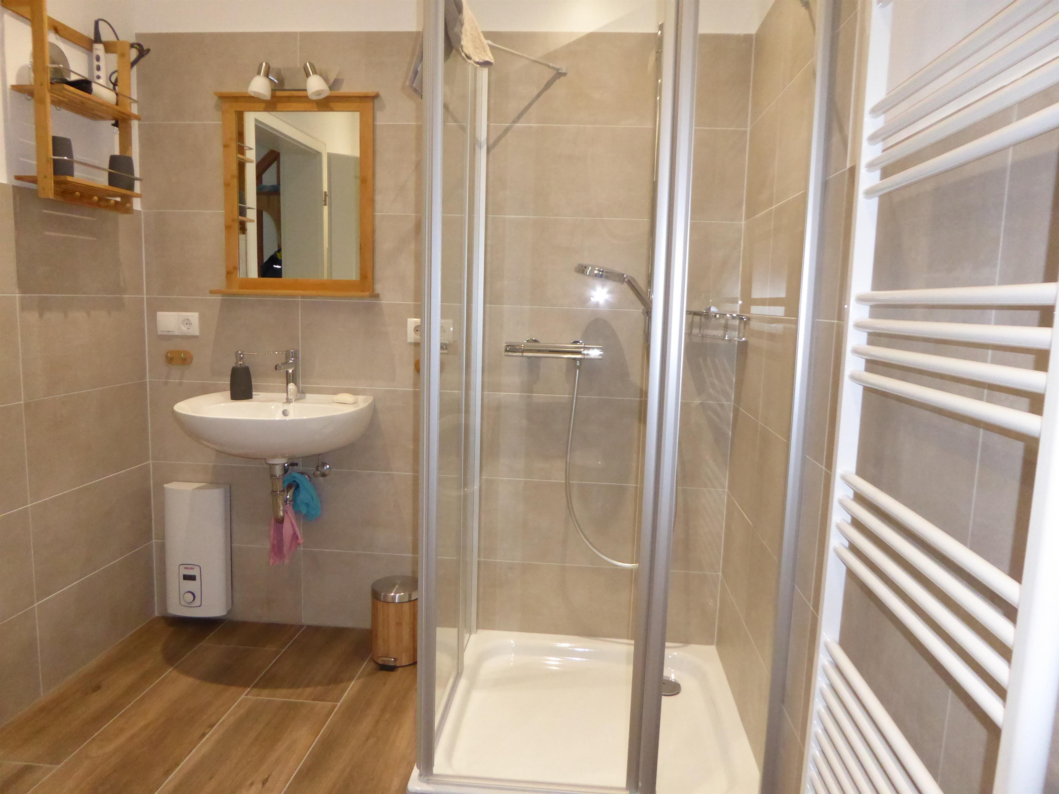 Die Wohnung bietet zwei Schlafzimmer, ein Badezimmer mit Dusche, eine offene Essküche mit vollausgestatteter Küchenzeile, einen großen Wohnraum mit gemütlicher Sofaecke, Leseecke und Fernseher. Schlafzimmer und Bad befinden sich im Erdgeschoss, der Wohnbereich liegt im ersten Obergeschoss des historischen Mühlengebäudes mit seinem schönen Ausblick auf den idyllischen Mühlenteich.