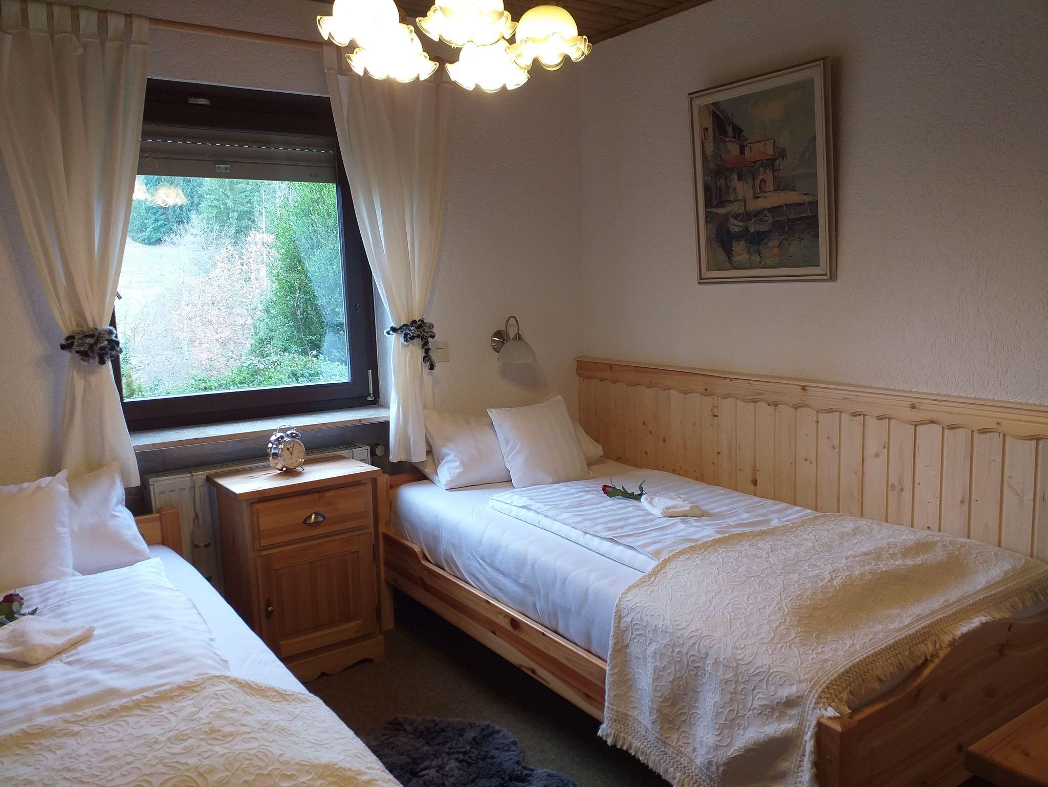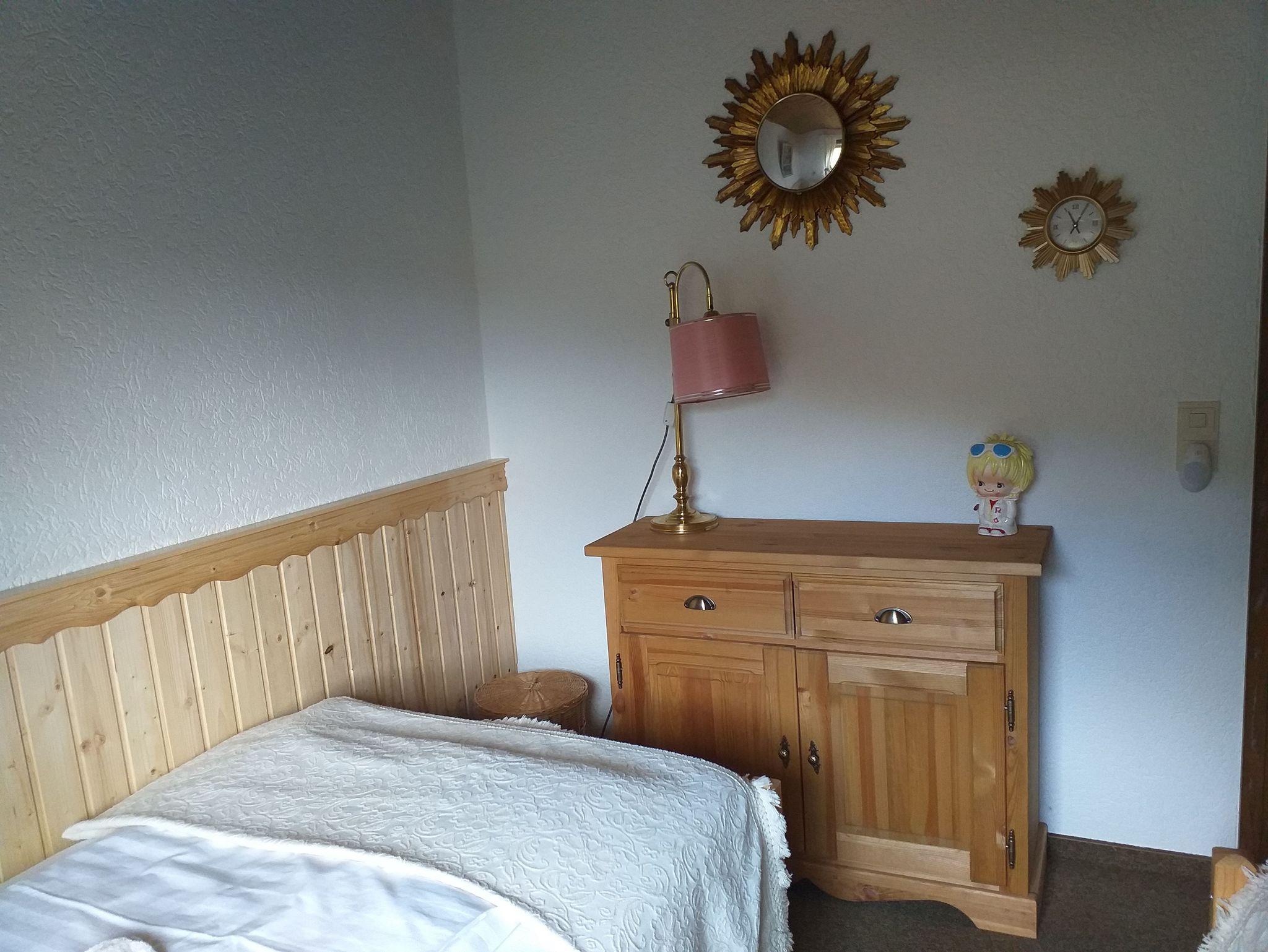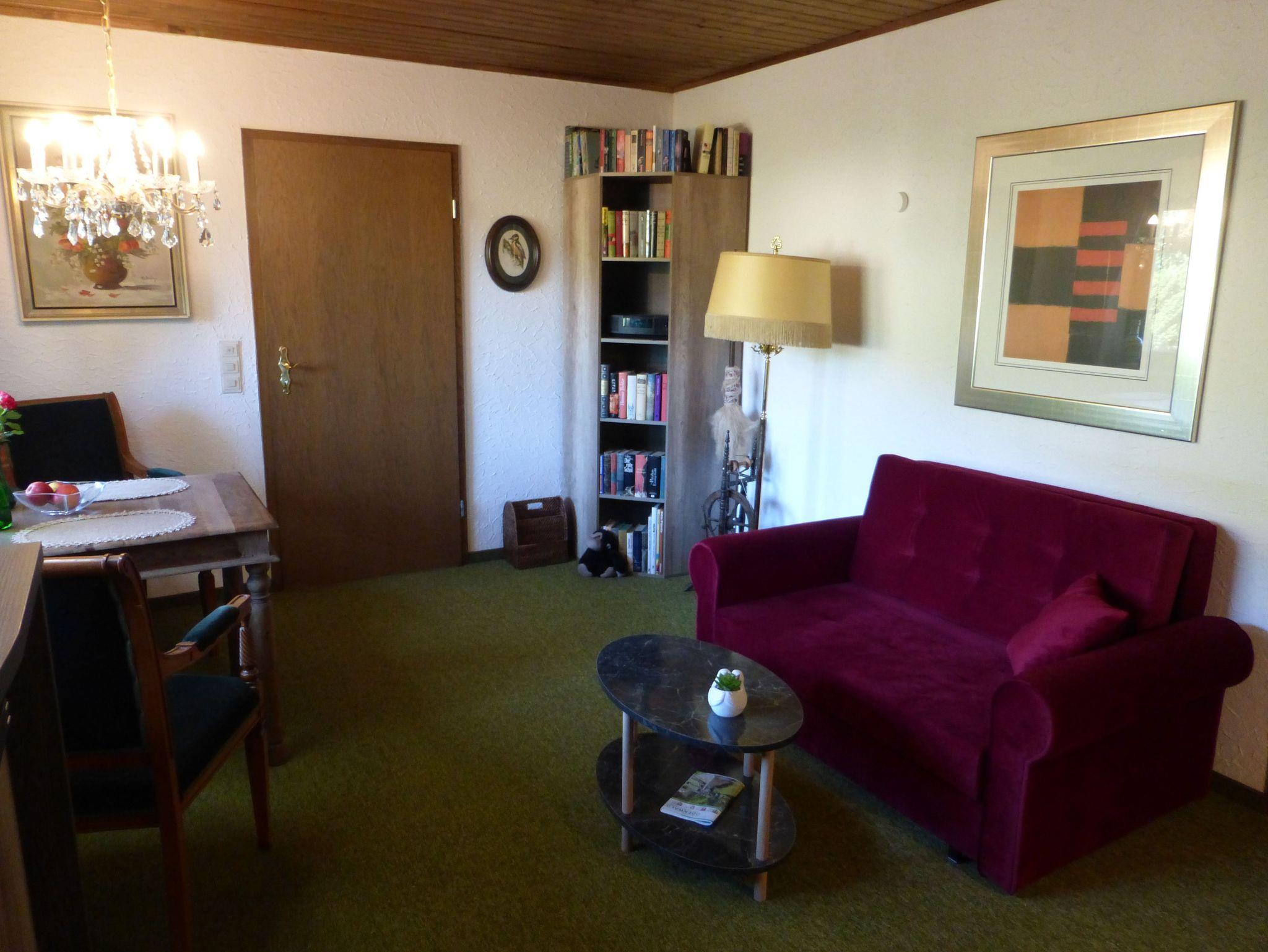 Die Ferienwohnung 2 befindet sich im Parterre und hat einen separaten Zugang. Sie bietet Ihnen ein gemütliches Wohn- und Esszimmer mit Panoramablick auf Wald und Wiesen, eine gut ausgestattete Küche, ein Schlafzimmer mit zwei Einzelbetten und ein Badezimmer mit Dusche.