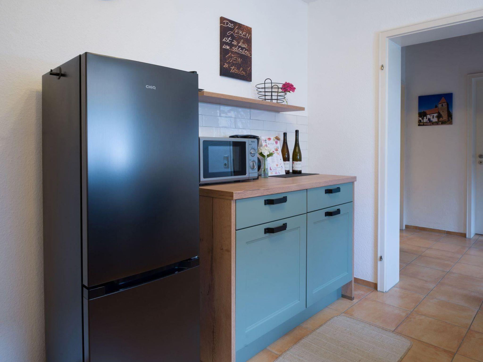 Die Küche ist mit allen wichtigen Utensilien sowie Geräten (Mikrowelle, Espressomaschine, Kaffeemaschine, Wasserkocher, Toaster, Eierkocher) ausgestattet. Eine Kühl- Gefrierkombination, ein Geschirrspüler als auch ein Umluftherd mit Kochceranfeld und beleuchtetem Dunstabzug sind vorhanden.Der Duschbereich im Bad ist begehbar und barrierefrei.