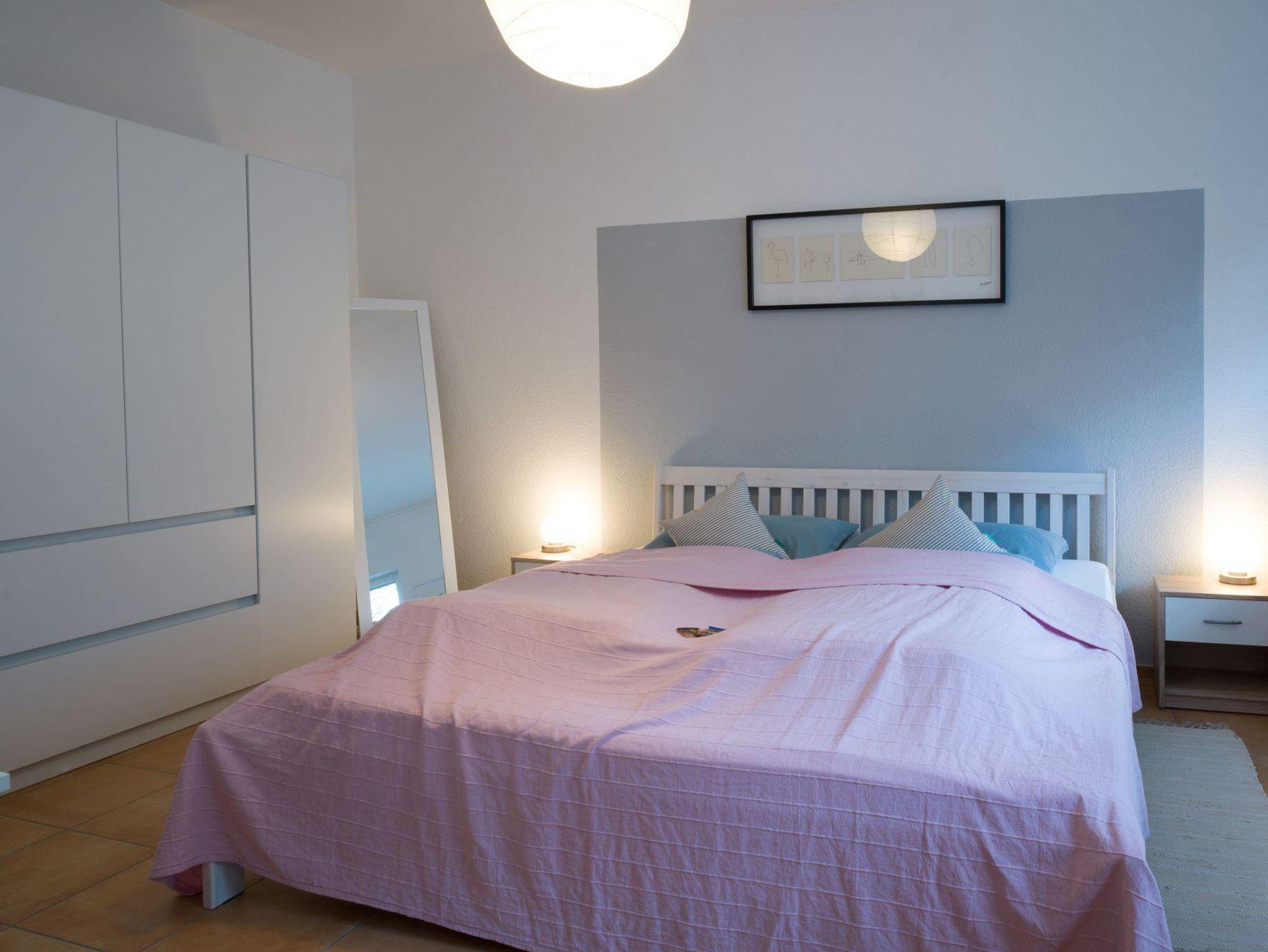 Das Schlafzimmer ist mit einem Doppelbett und einem geräumigen modernen Kleiderschrank eingerichtet. Genügend Platz für z. B. auch ein Babyreisebett ist vorhanden. Ein abschließbarer Abstellraum für Ihr Gepäck oder Sportgeräte, wie z. B. Fahrräder, ist in der Wohnung vorhanden.