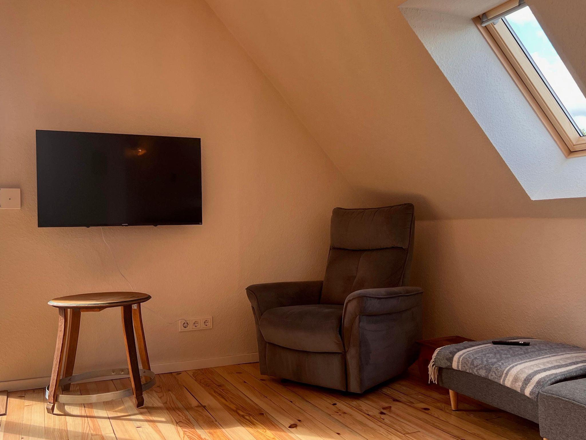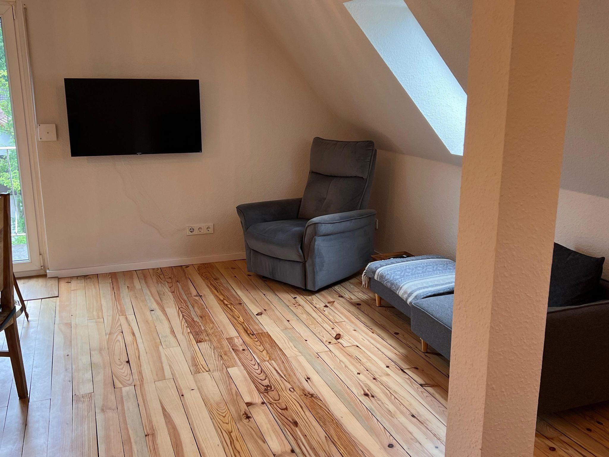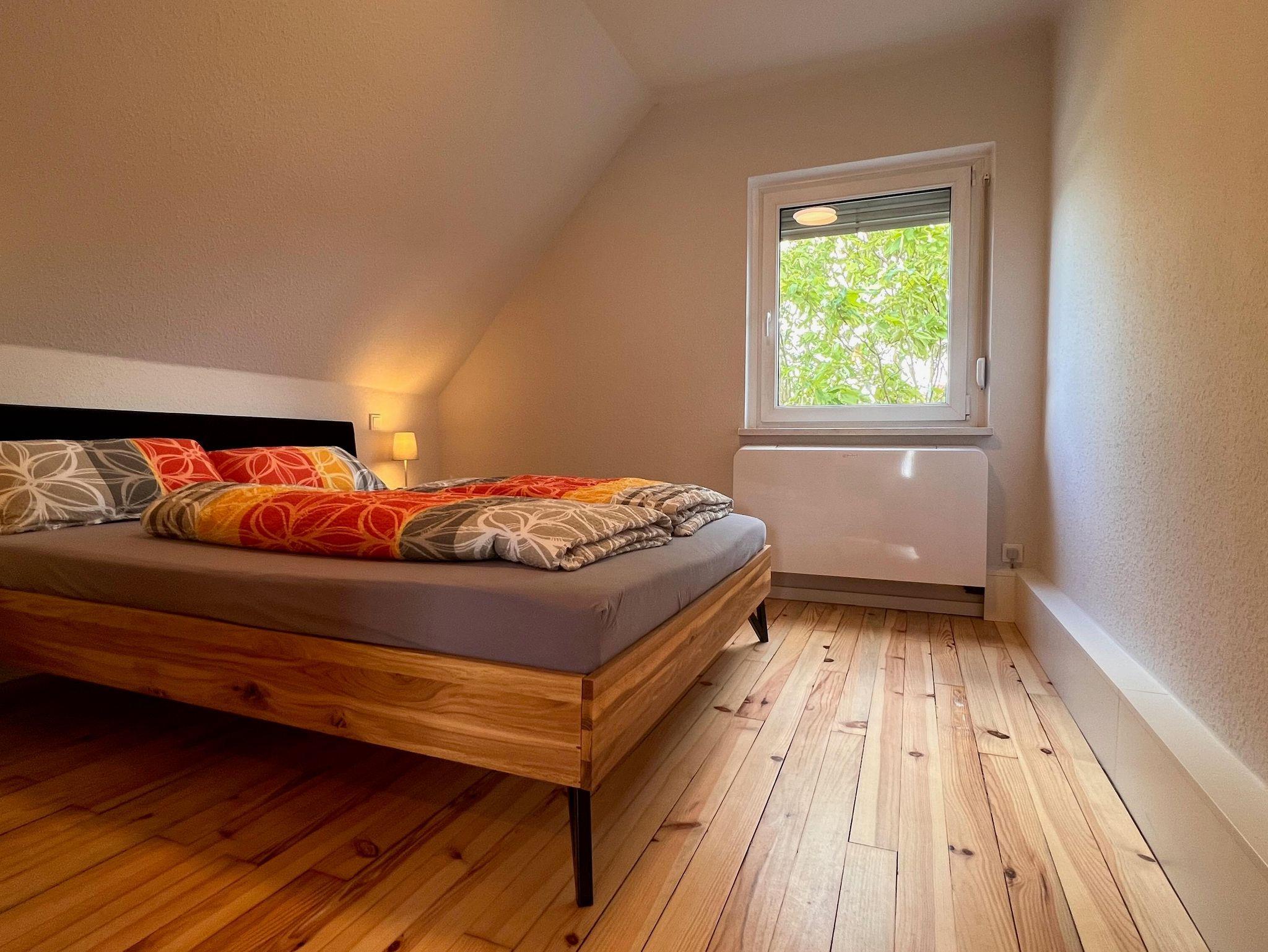 Die Ferienwohnung mit eigenem Eingang liegt im Dachgeschoss eines Zweifamilienhauses in einer ruhigen Seitenstraße von Limbach.