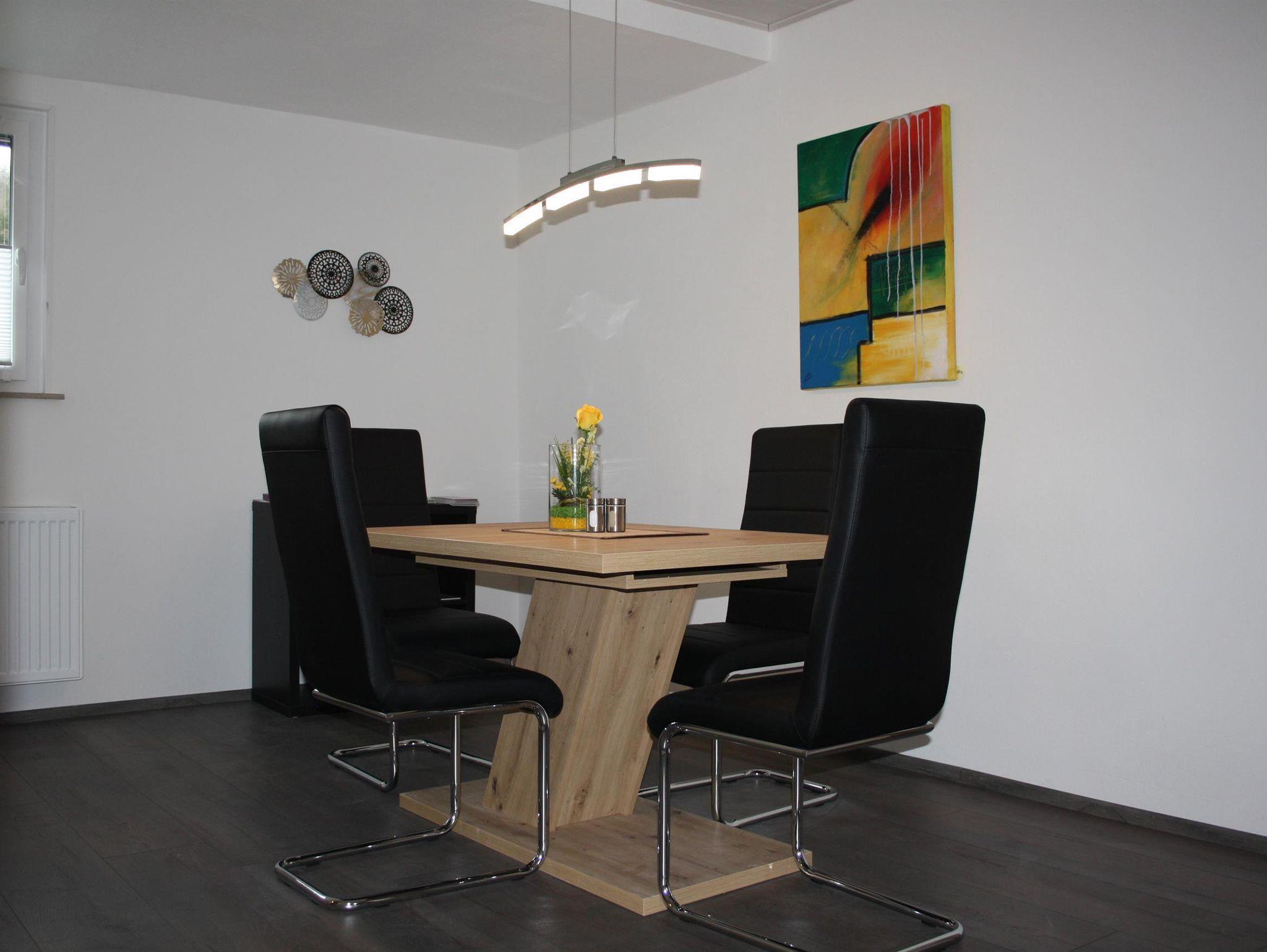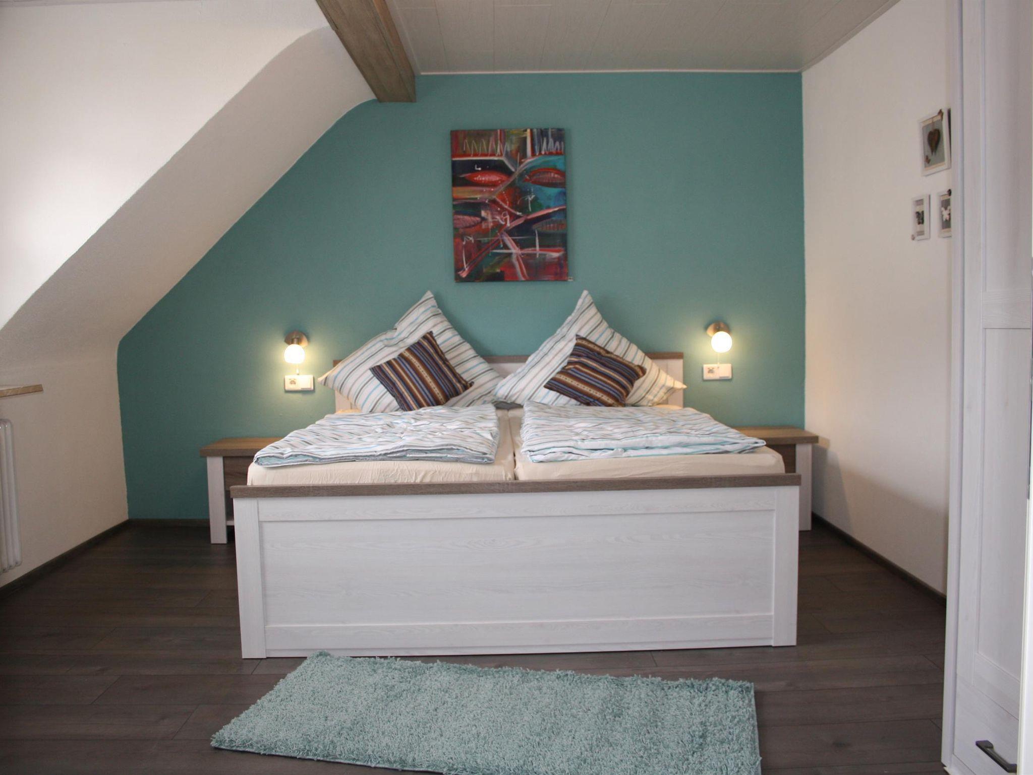 Die moderne, liebevoll mit heimischer Kunst gestaltete Wohnung hat ca. 65 m² und liegt im Obergeschoss. In der Küche finden Sie einen Herd mit Ceranfeld, einen Backofen, Geschirrspüler, Kühlschrank, Gefrierfach, Kaffeemaschine, Toaster und Wasserkocher.