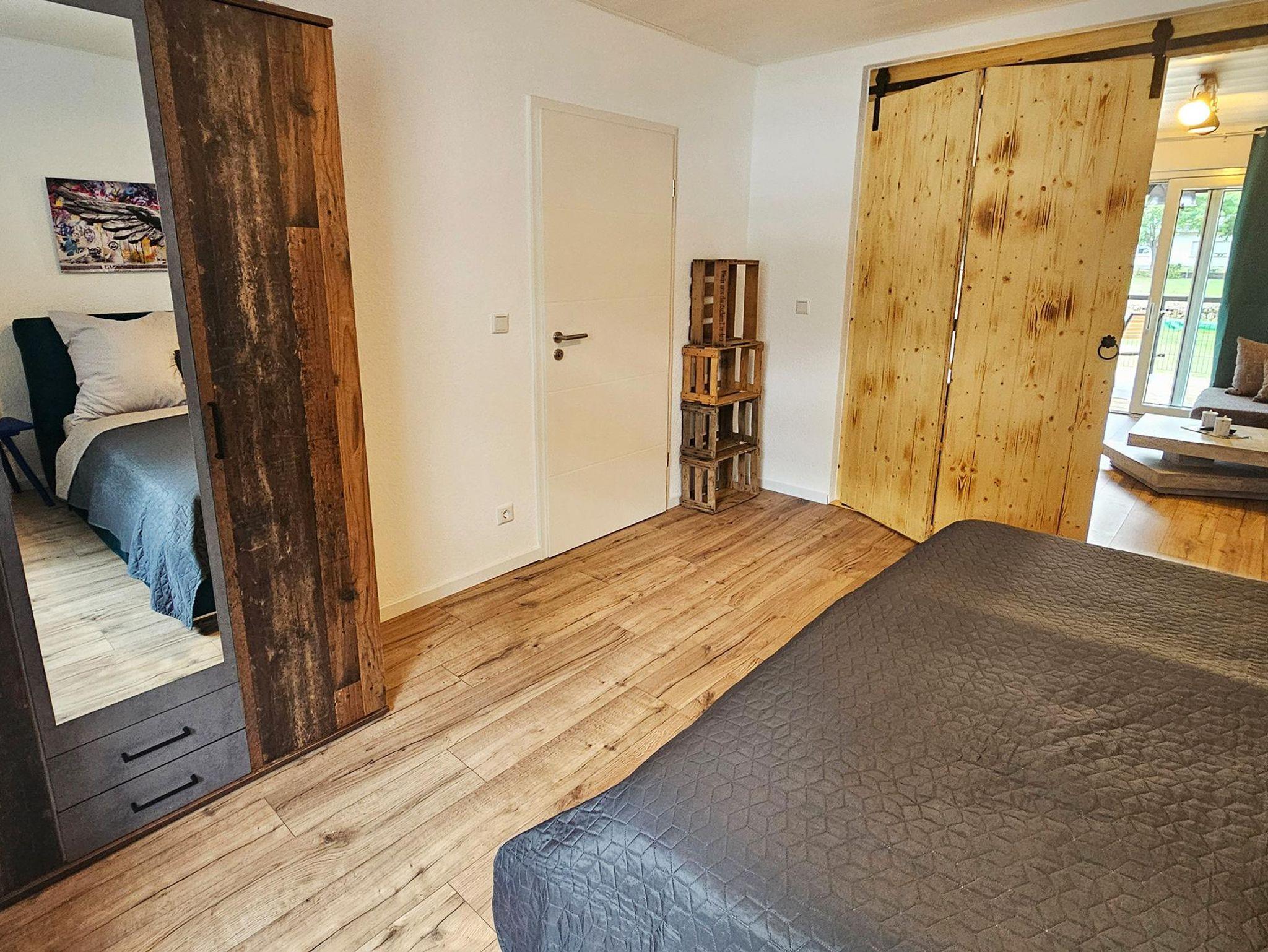 Das ist die komplett neu renovierte Erdgeschosswohnung von insgesamt zwei Wohnungen im Ferienhaus Kirner Kiste.