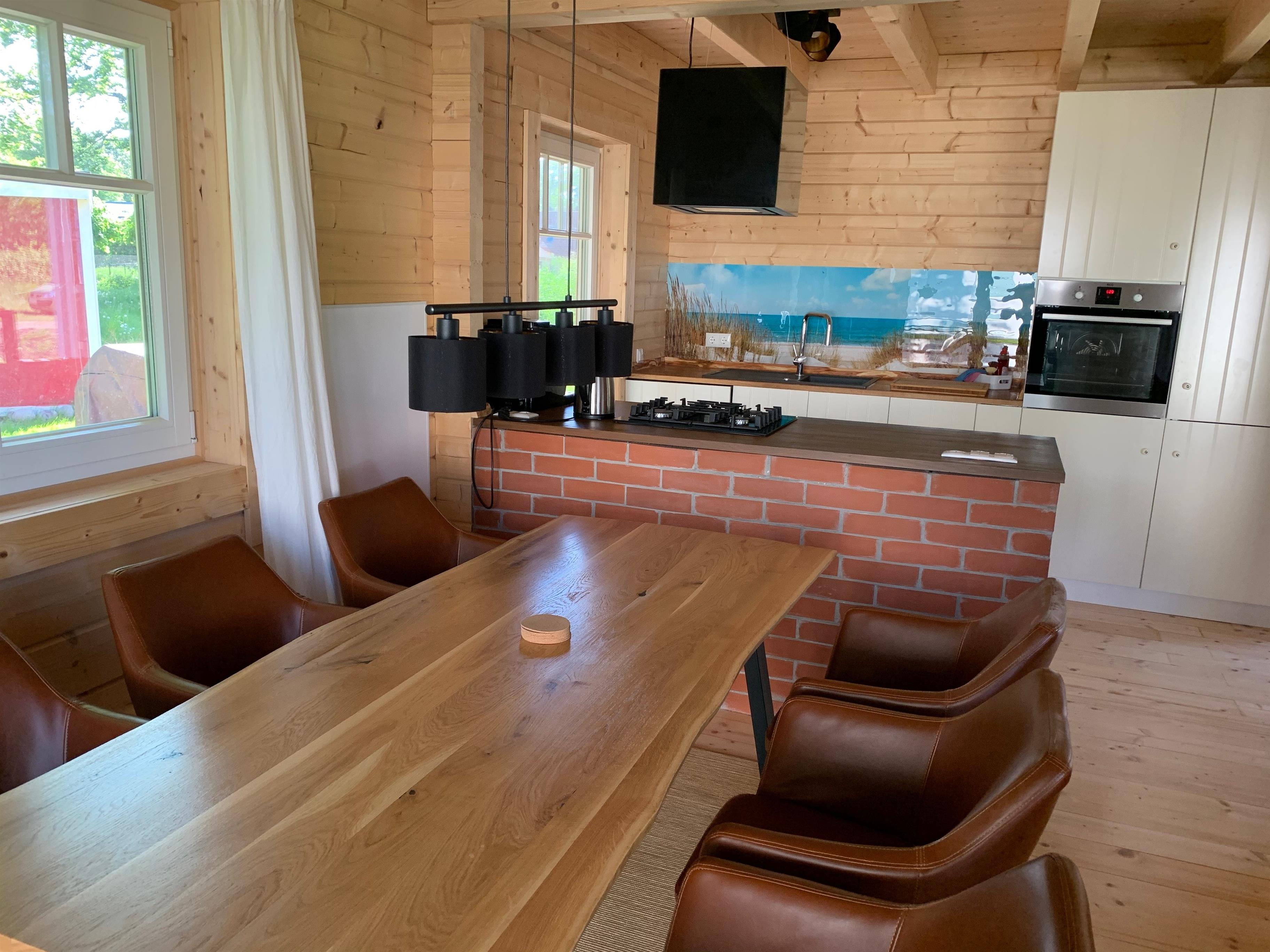 Im Badezimmer finden Sie eine geräumige Dusche mit Regenbrause. Die große Wohn- und Esszimmerkombi ist lichtdurchflutet. Die bodentiefe Fensterfront bietet einem auch vom gemütlichen Sofa aus einen hervorragenden Blick, z. T. direkt auf die Ostsee oder bei schlechtem Wetter auf den Fernseher :-). Der Übergang zur Essecke, die an ein uriges Landhaus erinnert, und zur offenen Küche sind fließend und laden zum gemütlichen Beisammensein ein. Die voll ausgestattete Küche lässt keine Wünsche offen und verleitet zum Kochen. Sie bietet viel Arbeitsfläche zum Schnippeln und Vorbereiten. Es sind ein Ofen auf Arbeitshöhe zum angenehmeren Kochen, ein Gasherd, ein Wasserkocher, ein Kaffeevollautomat und ein Toaster vorhanden. Nach dem Essen tut die Spülmaschine den Rest. Zusätzlich bietet das Haus einen Staubsauger und einige Putzutensilien. Bei genauerem Hinsehen findet man auch einen erste Hilfe-Koffer und andere Dinge wie z.B. eine Strandmuschel, die natürlich gerne genutzt werden darf. Des Weiteren gibt es noch ein Kanu für max. 5 Personen und zwei Mountain-Bikes für Erwachsene.