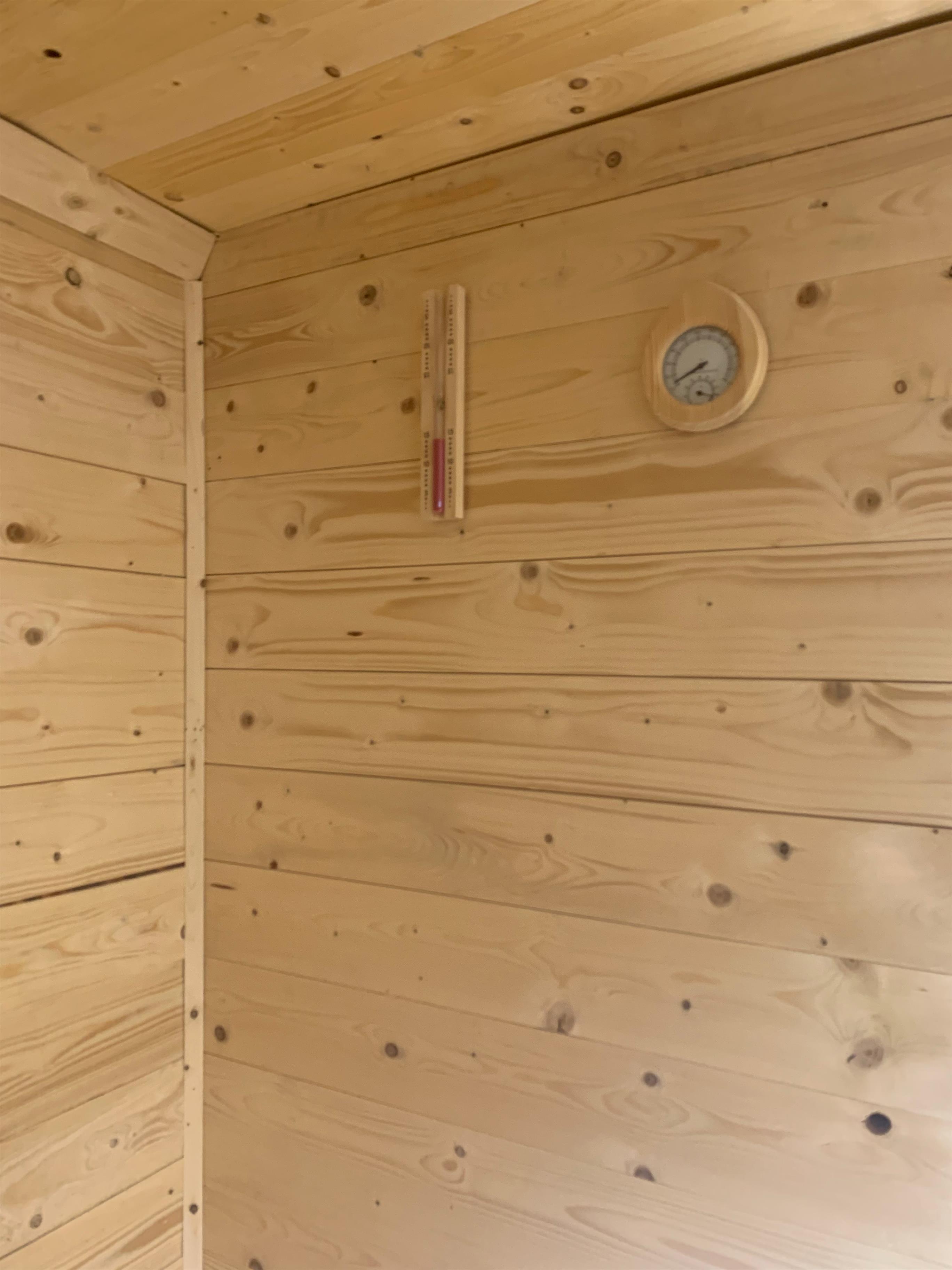 Hinweis: Sauna ist fertig! Für die beliebig häufige Nutzung der Sauna während des Aufhenthalts fällt eine einmalige Nutzungs und Reinigungspauschale von 25 EUR an.