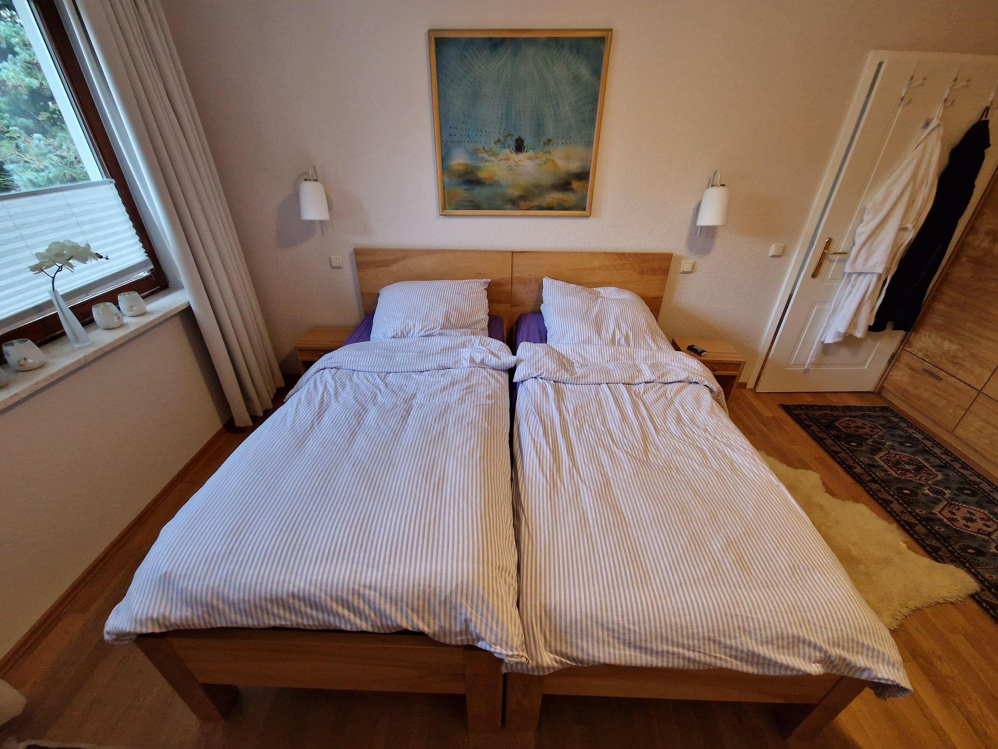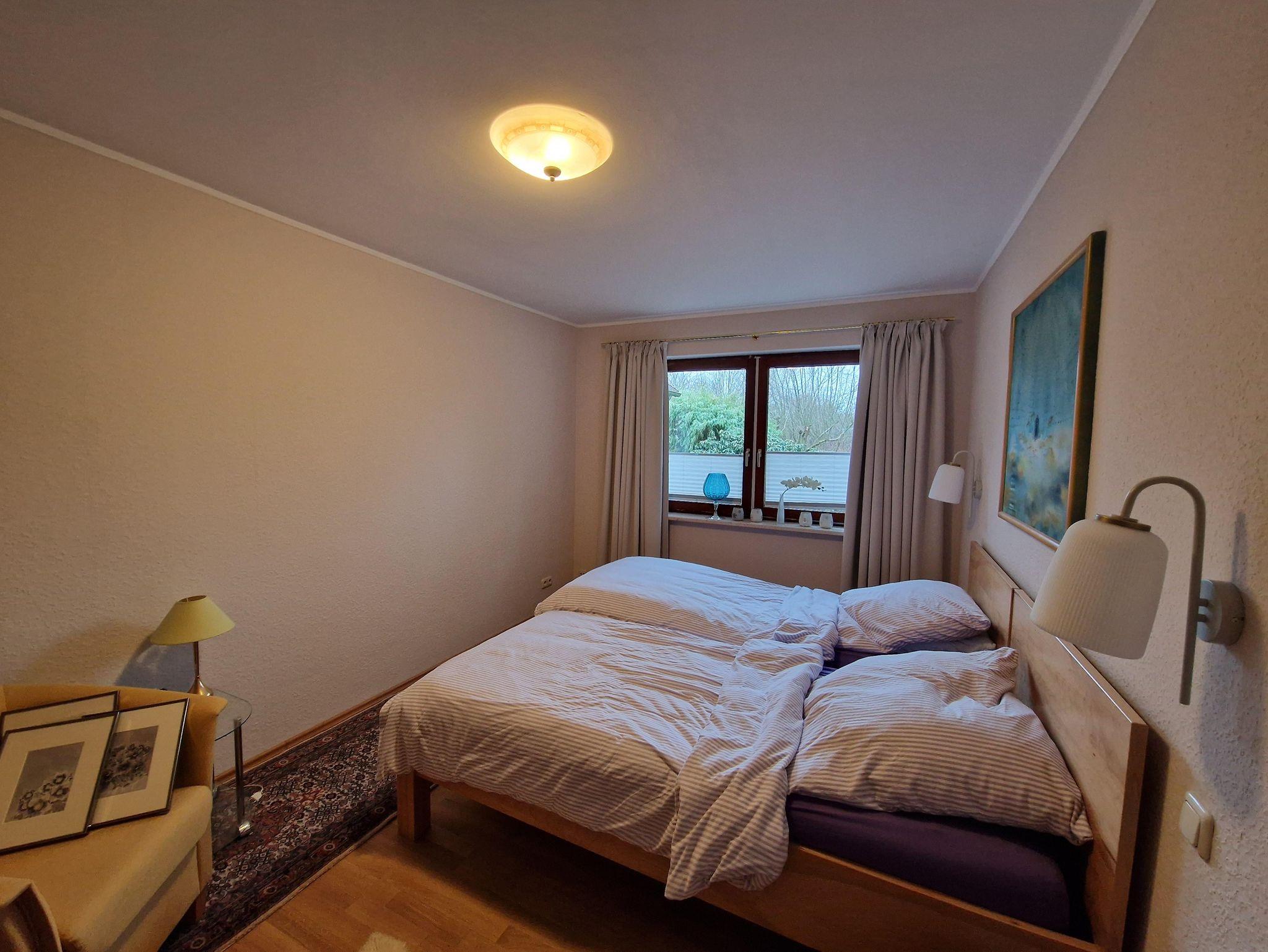 Die Wohnung ist komplett möbliert, die recht komfortable und komplett ausgestattete Wohnküche mit Geschirrspüler und Waschmaschine ausgestattet. Das gesamte Haus - und damit auch die Ferienwohnung - ist mit Fußbodenheizung ausgestattet. Vom Wohn- und Schlafzimmer aus haben Sie einen Blick in unseren Garten und auf die Terrasse. Diese dürfen Sie gerne nach Absprache nutzen. Dafür stehen auch Gartenmöbel zur Verfügung.