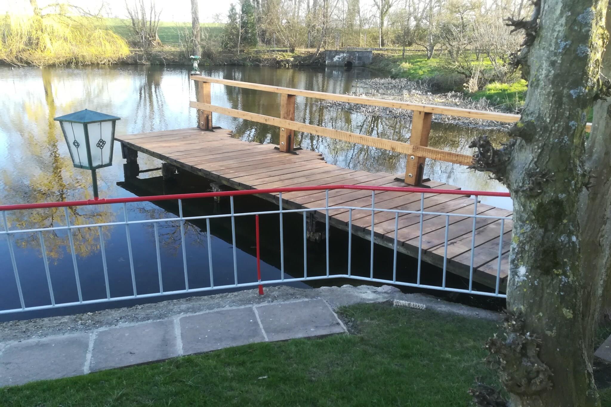 Stueetage: (spisestue(spisebord), Køkken(spisebord, kogeplade, elkedel, brødrister, kaffemaskine, combi-mikroovn, køleskab, barnestol), soveværelse(enkeltseng, enkeltfoldeseng, dobbeltseng, Fjernsyn), badeværelse(bruser)) fortøjningsbro, rejseseng, baggård, have, grill, parkering, dam, legeredskaber, rutsjebane, Gyngestativ