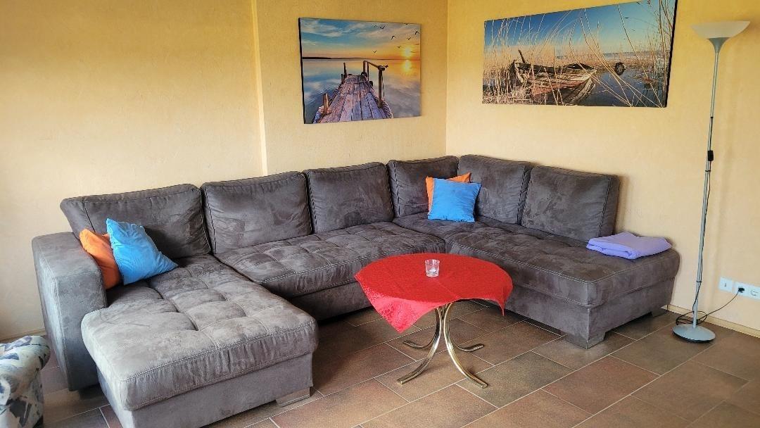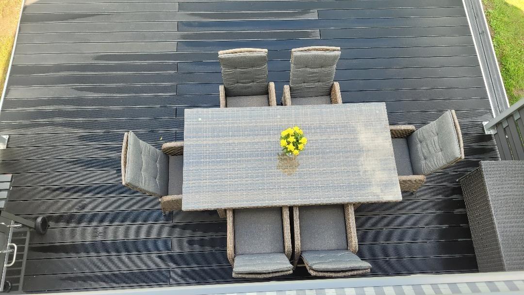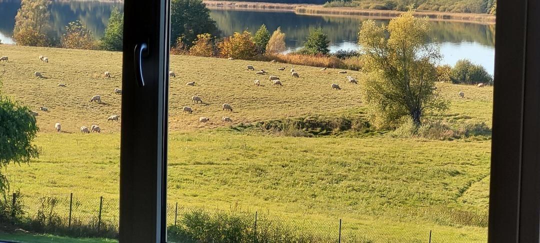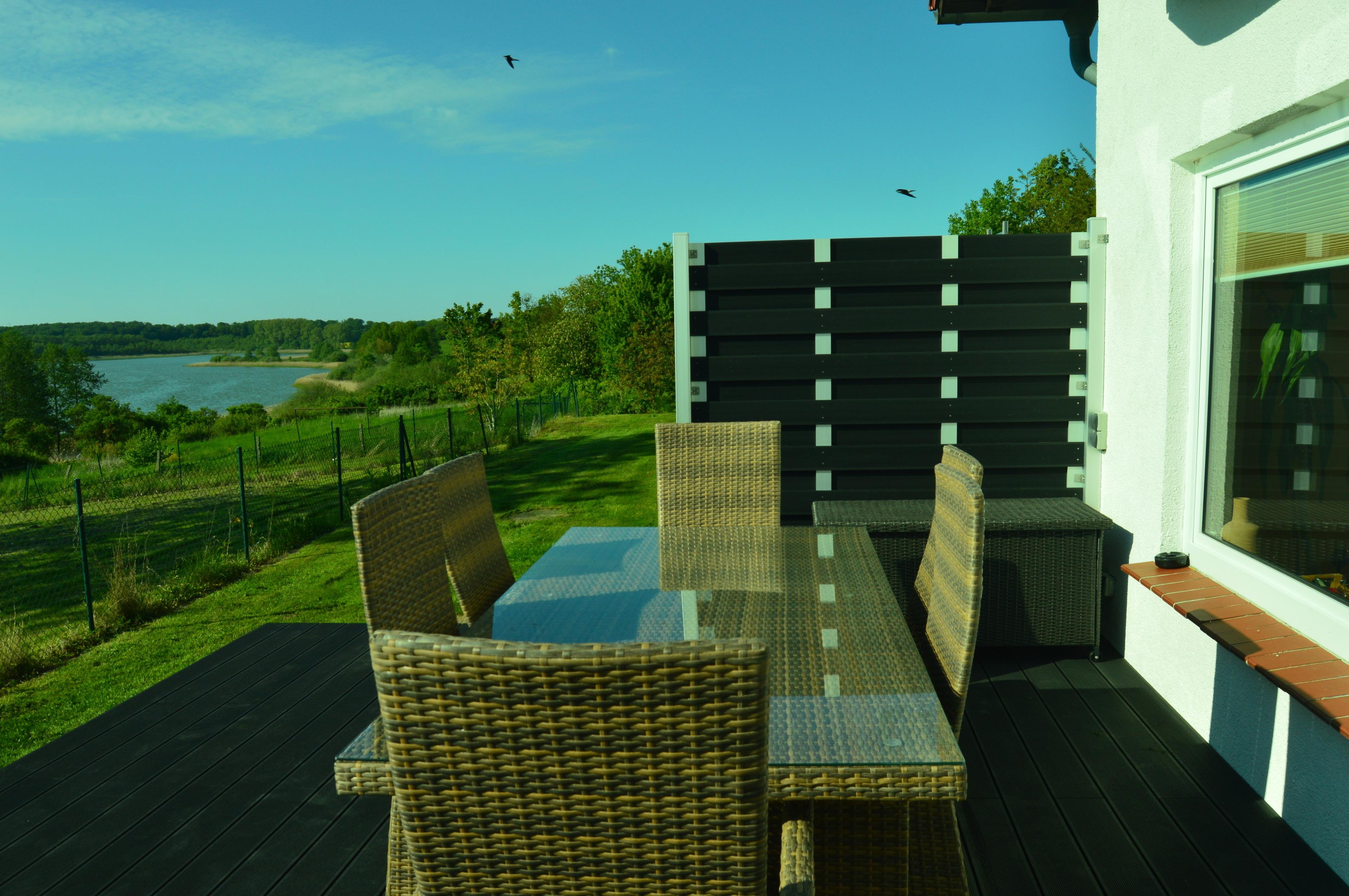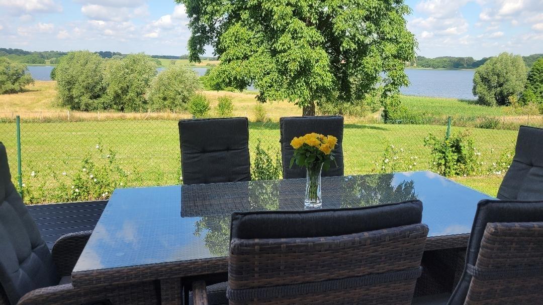 das Ferienhaus hat ein großes Wohnzimmer mit offener Einbauküche und einer 25 qm großen Terrasse, von der man über den ganzen See schauen und die Natur genießen kann.