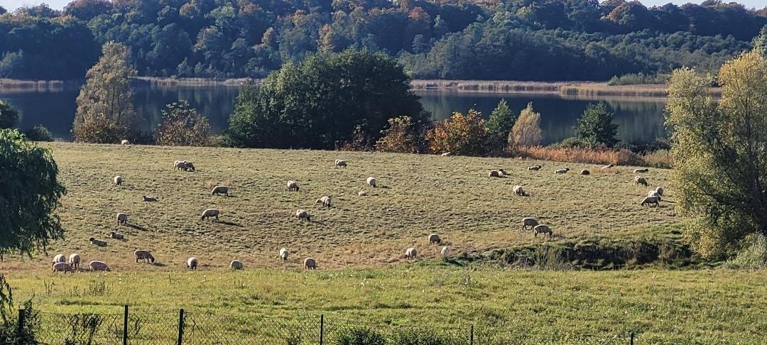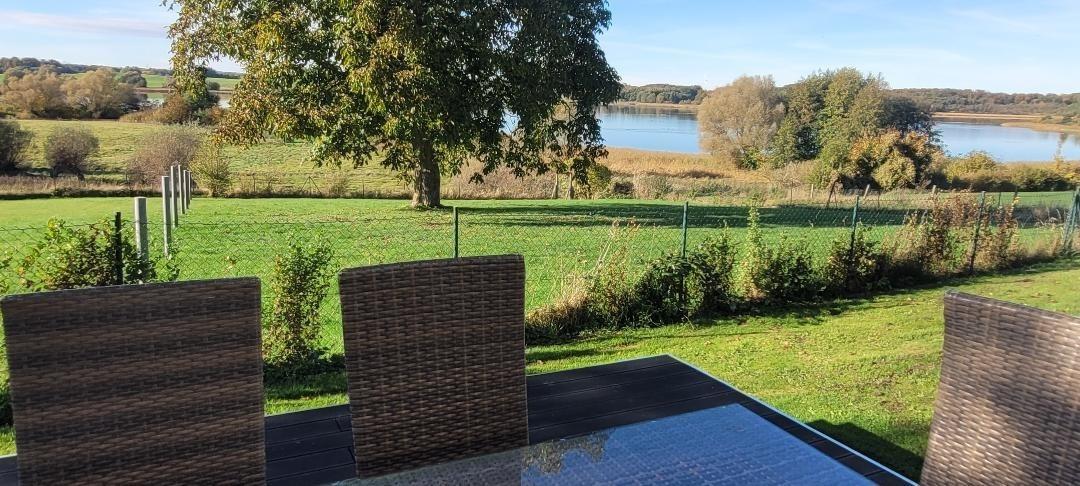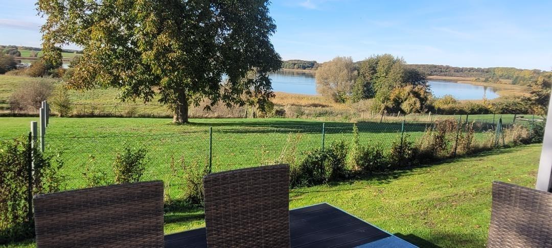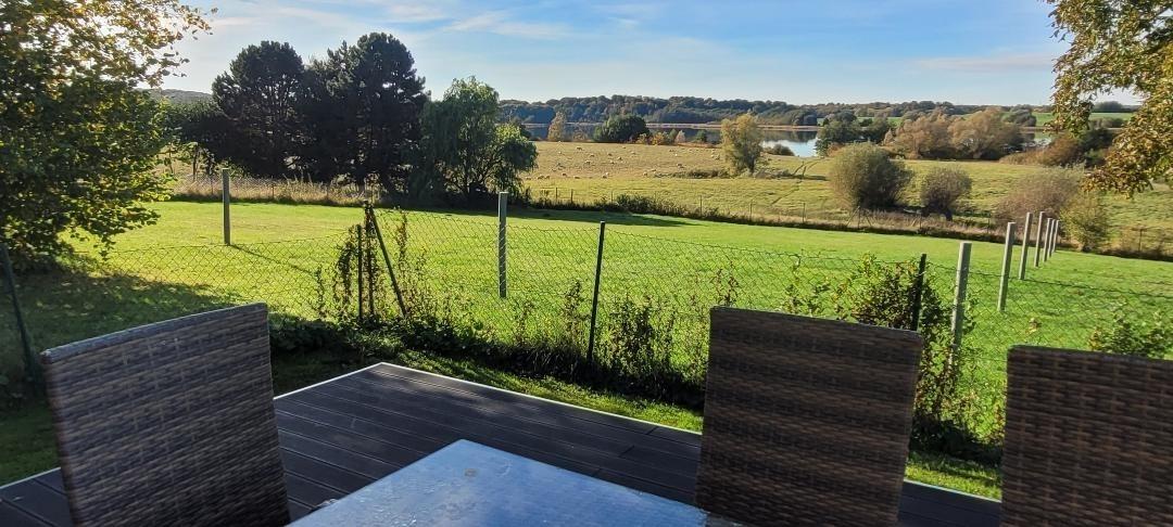 Schönes großes Ferienhaus mit Seeblick, in absoluter ruhiger Lage, großes Wohnzimmer mit offener Küche, Kamin und großer Terrasse (25 qm) mit unverbautem Blick auf den ca. 100 m entfernten See. (Bademöglichkeit)