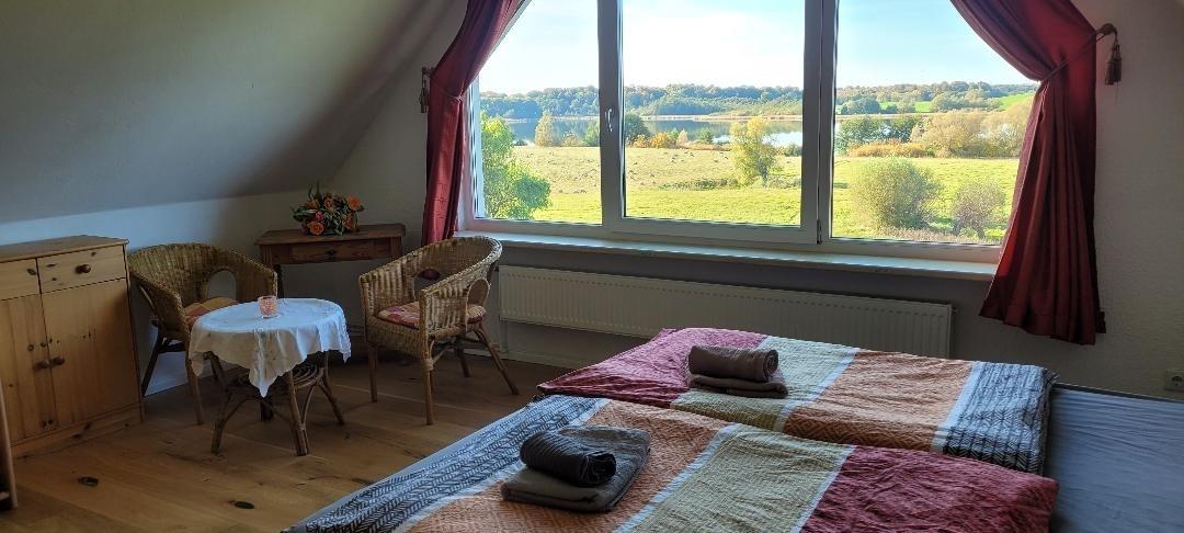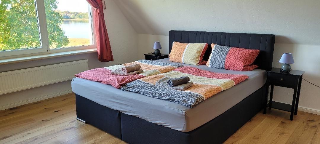 Zwei große Schlafzimmer, mit jeweils 2 Schlafmöglichkeiten. Ein Schlafzimmer mit Blick zum See, und einem großen Doppelbett, das 2. Schlafzimmer ist mit 2 Einzelbetten ausgestattet. Aufbettung möglich.