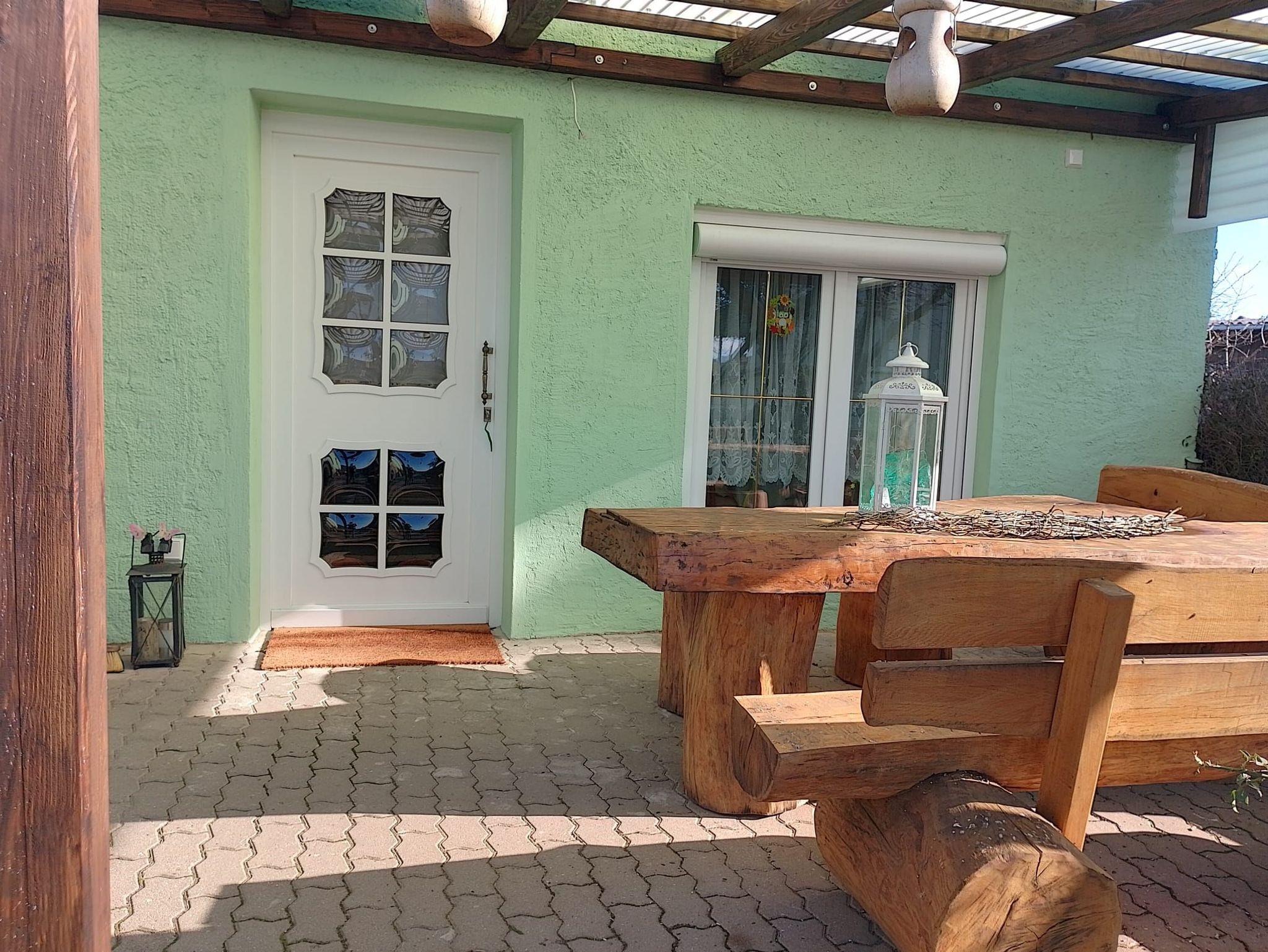 Die ebenerdige Ferienwohung besitzt einen Außenbereich mit einer Sitzmöglichkeit zum entspannen.