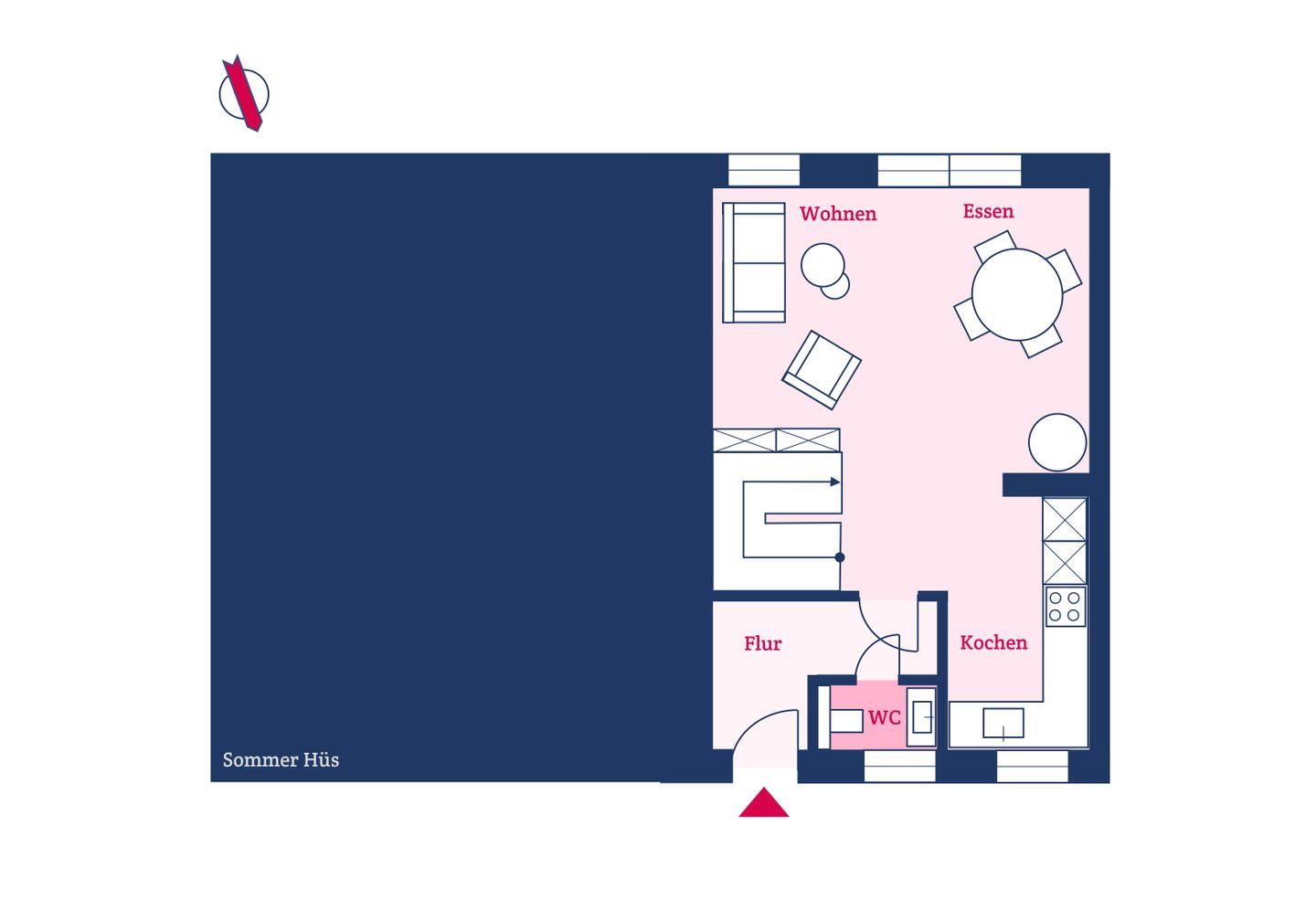 Der hochwertig eingerichtete Hausteil Hyggelig Huus, welcher im Jahr 2022 fertiggestellt wurde, verfügt über 2 Schlafzimmer, 1 Bad und 1 Gäste-WC und bietet komfortabel Platz für bis zu 2 Personen zuzüglich 2 weiteren Mitreisenden und einer Kleinkinderaufbettung. Auch ein Hund ist hier herzlich willkommen.