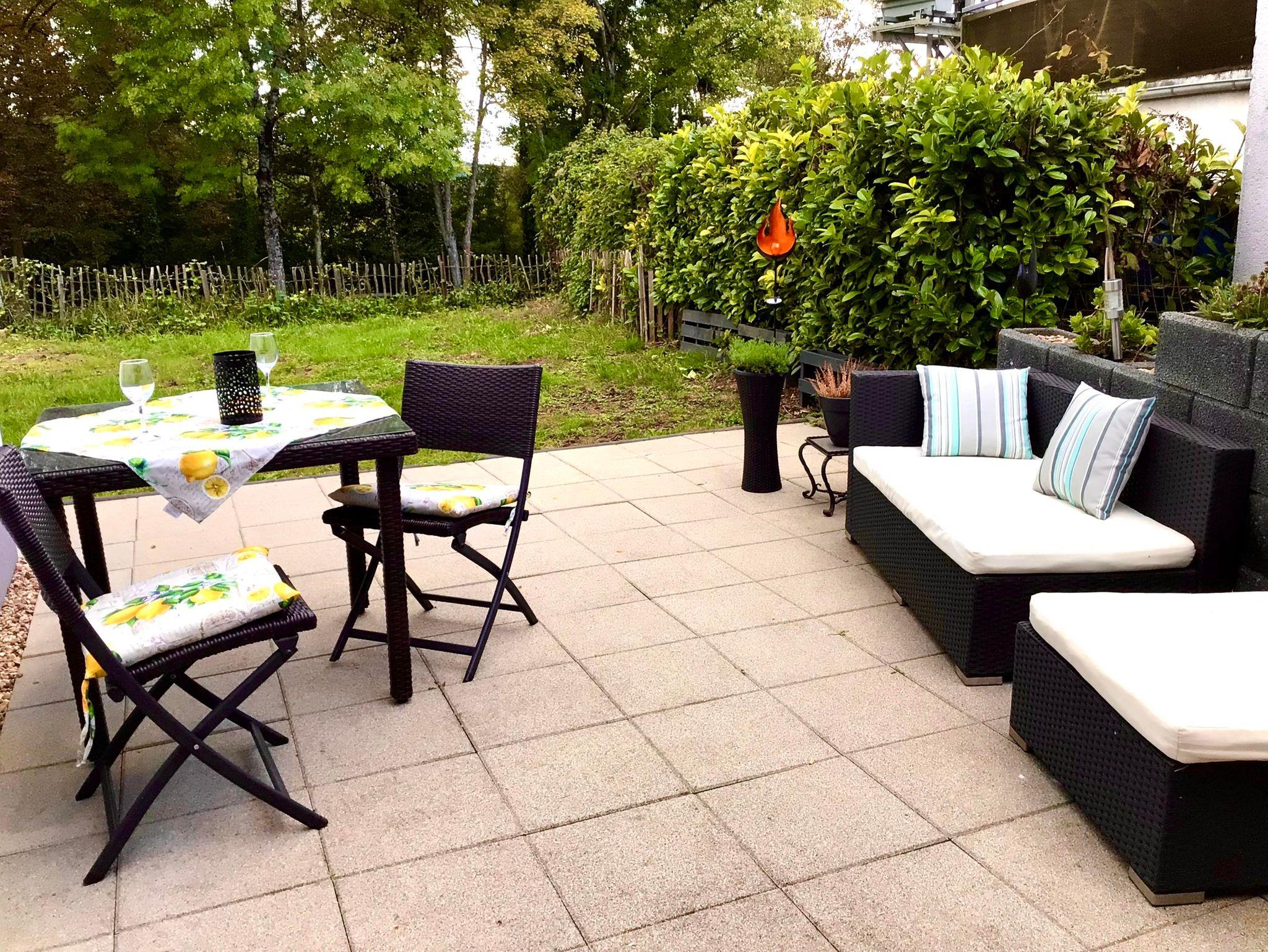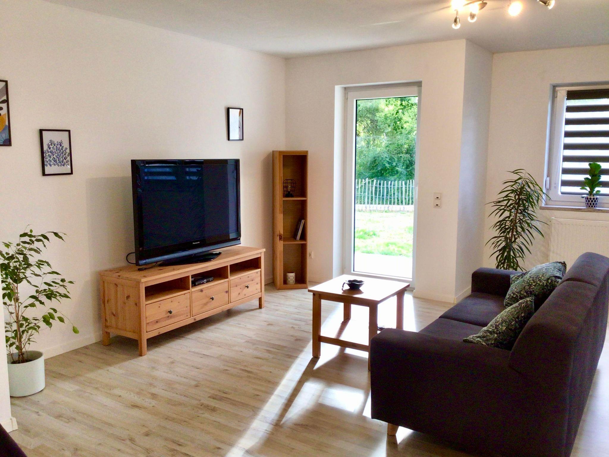 Die Wohnung verfügt über W-Lan in allen Räumen. Eine Küche, die mit Herd, Backofen, Kühlschrank, Kaffeemaschine, Wasserkocher, Mikrowelle und allen notwendigen Küchenutensilien ausgestattet ist, um Ihre Mahlzeiten bequem zuzubereiten. Der offene Essbereich bietet großzügigen Platz, ideal für ein entspanntes Frühstück oder um gemütlich ein Glas Wein zu genießen. 1 Schlafzimmer mit Doppelbett. Ein gemütliches Wohnzimmer mit Flachbild TV. Des Weiteren steht ihnen ein Schreibtisch zum Arbeiten zur Verfügung. Ein modernes Bad mit Badewanne, WC, Waschbecken und Fußbodenheizung. Unsere Ferienwohnung bietet Ihnen eine eigene Terrasse mit umzäunten Garten, der Ihnen zur alleinigen Nutzung zur Verfügung steht. Einen separaten Raum zum aufhängen von Wäsche.