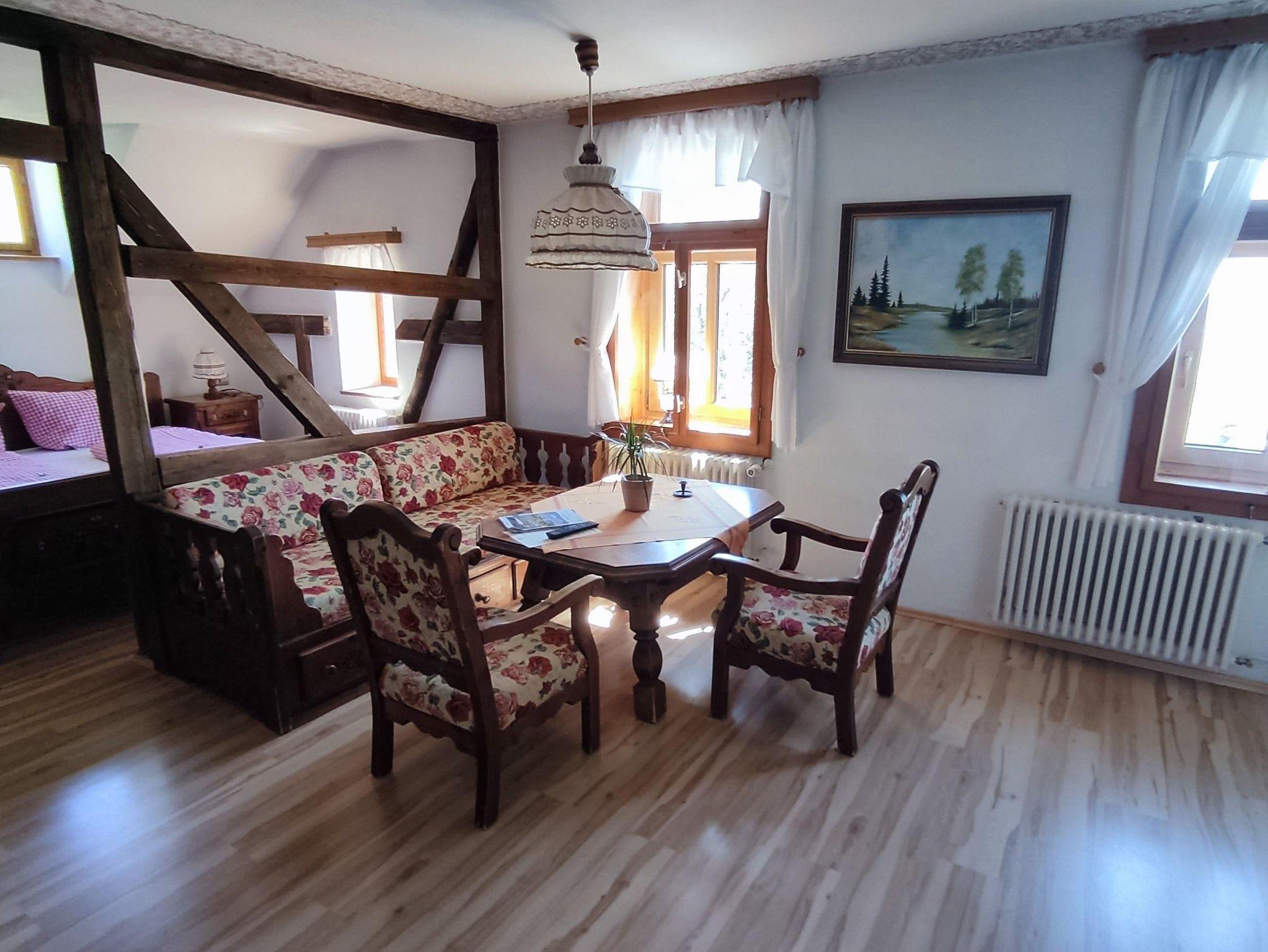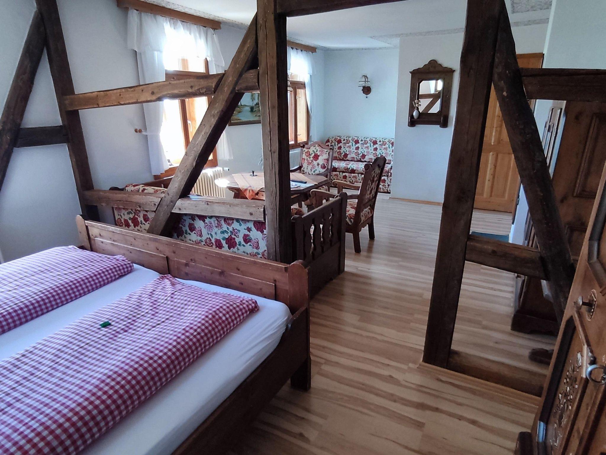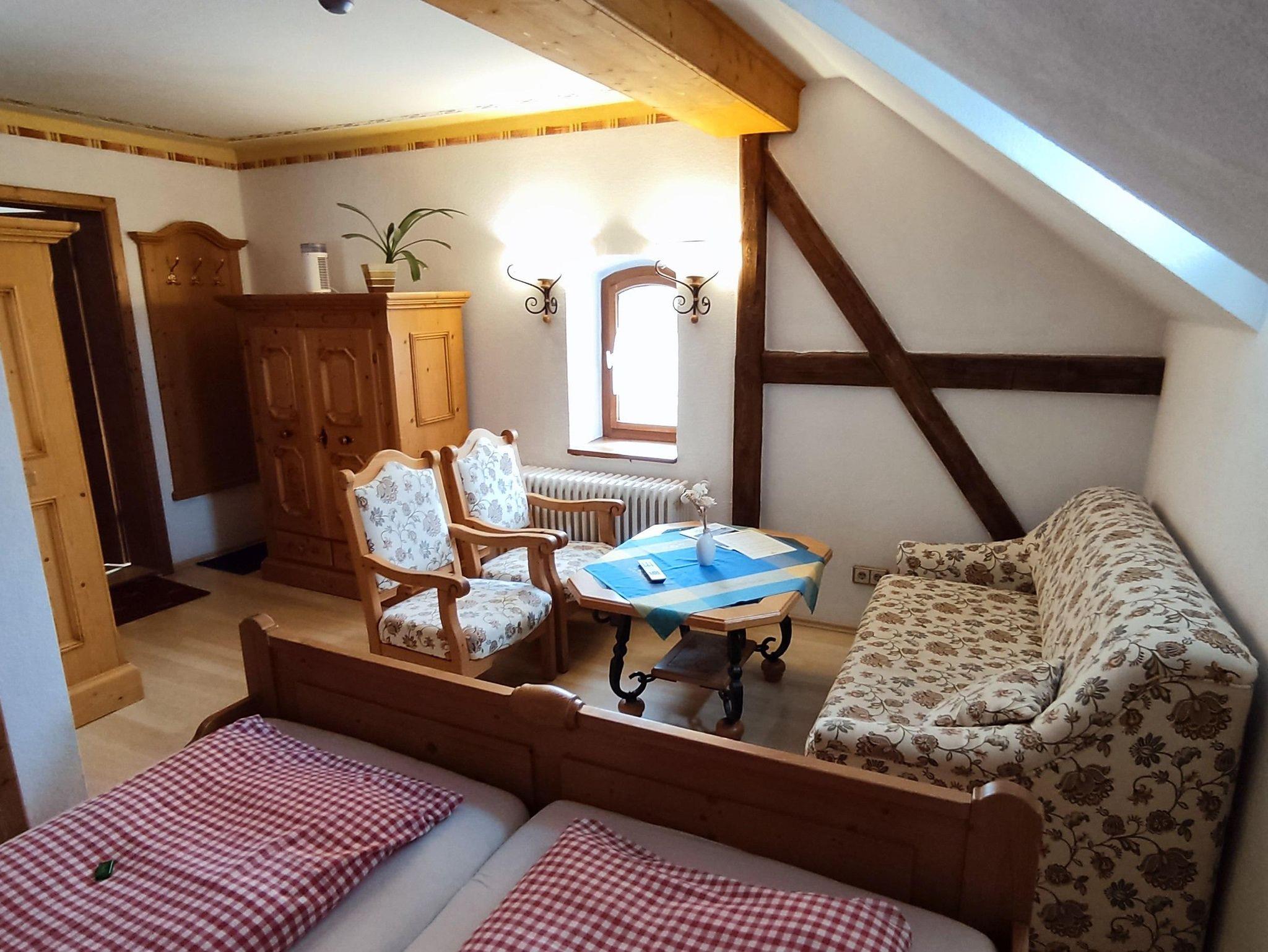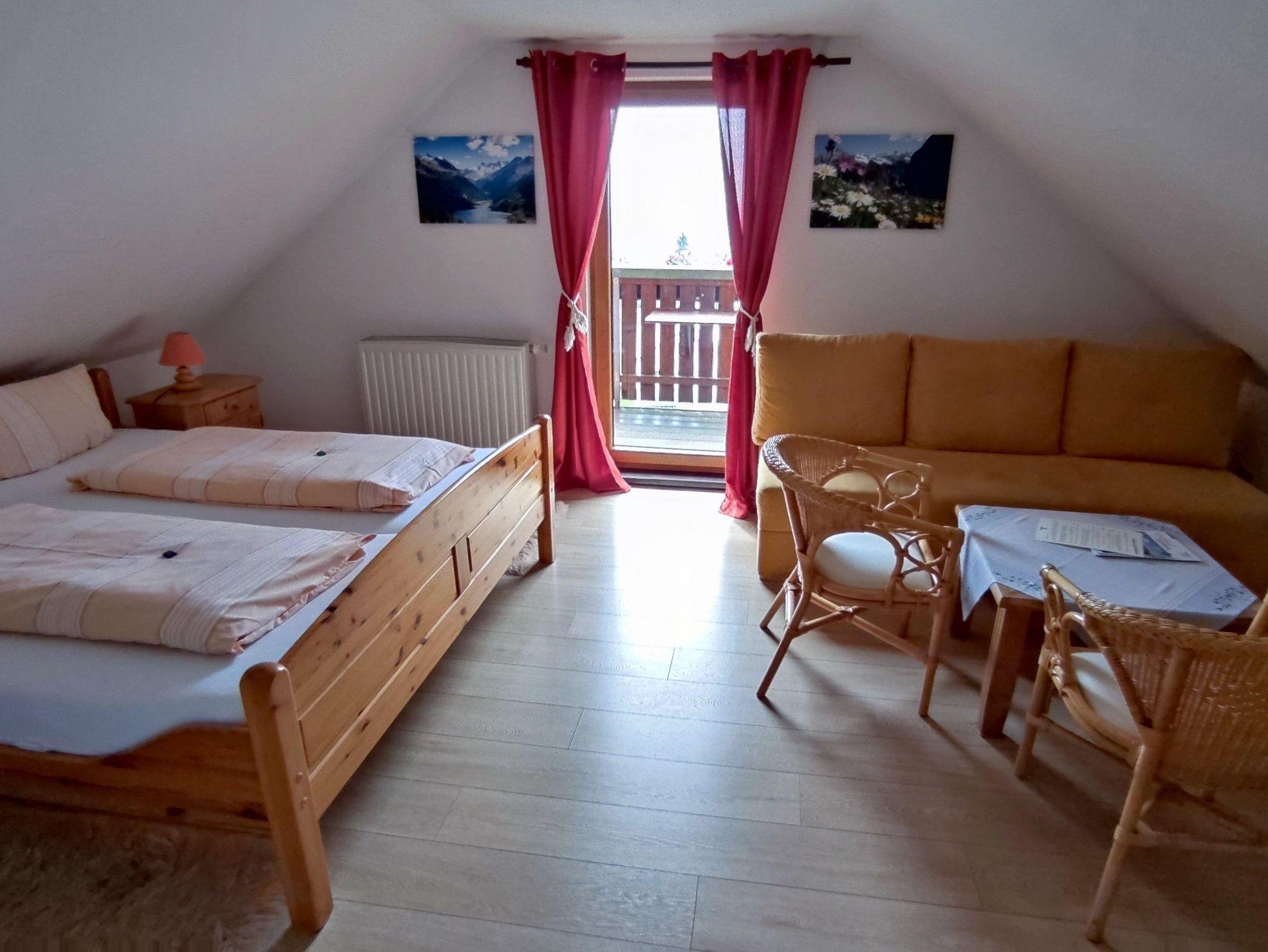 Ausstattung im Überblick: Blick zum Aschberg, Satelliten-TV, Dusche, WC, Doppelbett, 1 Aufbettung Schlafsofa für Kinder und Jugendliche, Preis zzgl. Kurtaxe
