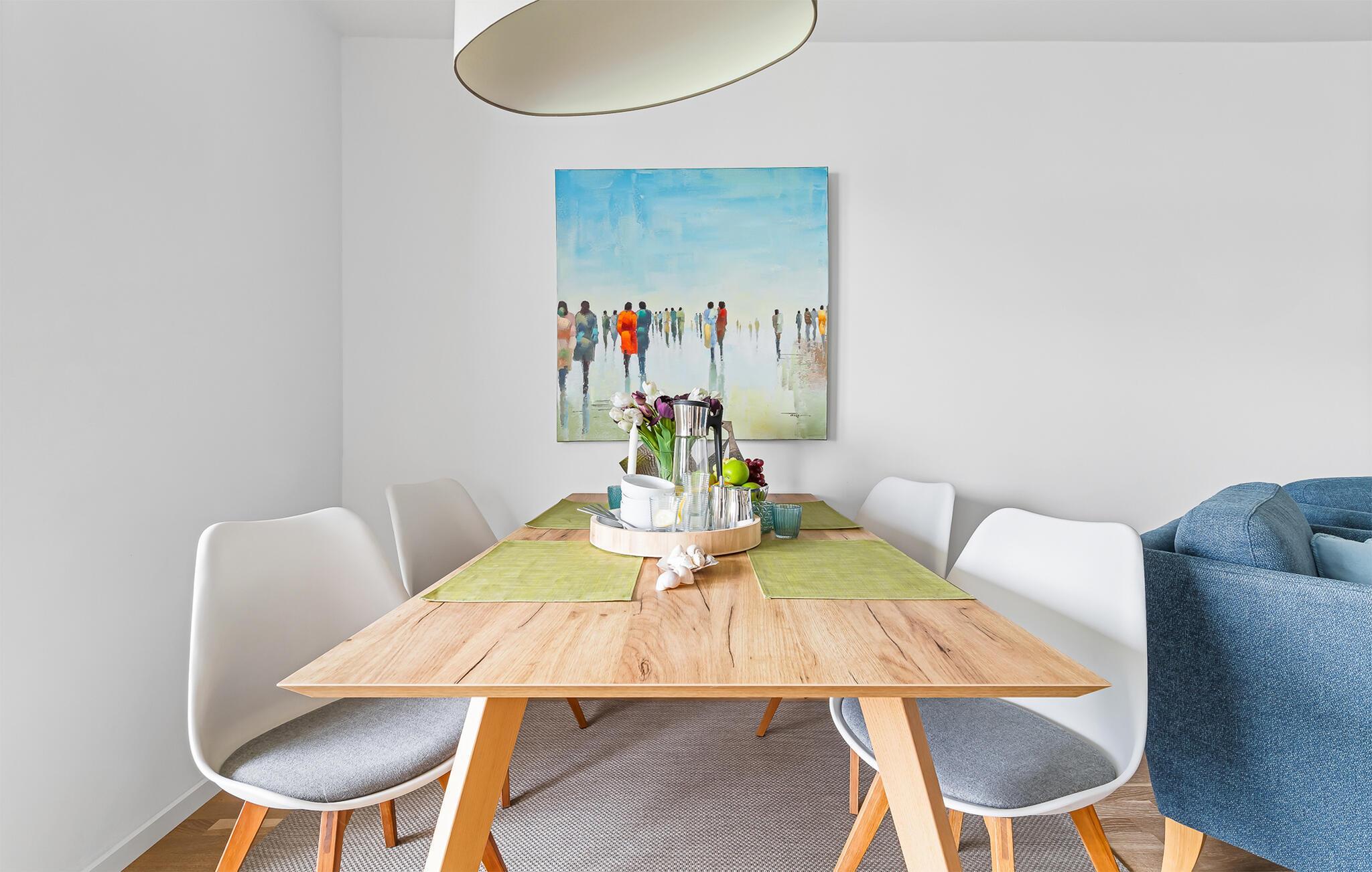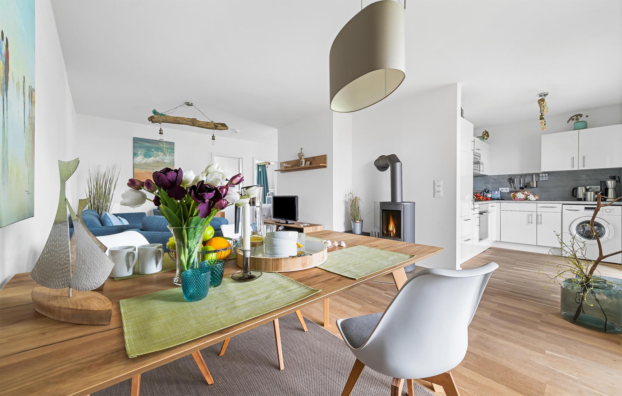 WiFi og Smart TV med Telekom Home Entertainment-program sørger også for indendørs underholdning. De to soveværelser er udstyret med højkvalitets box-ring senge og giver direkte adgang til landskabet.