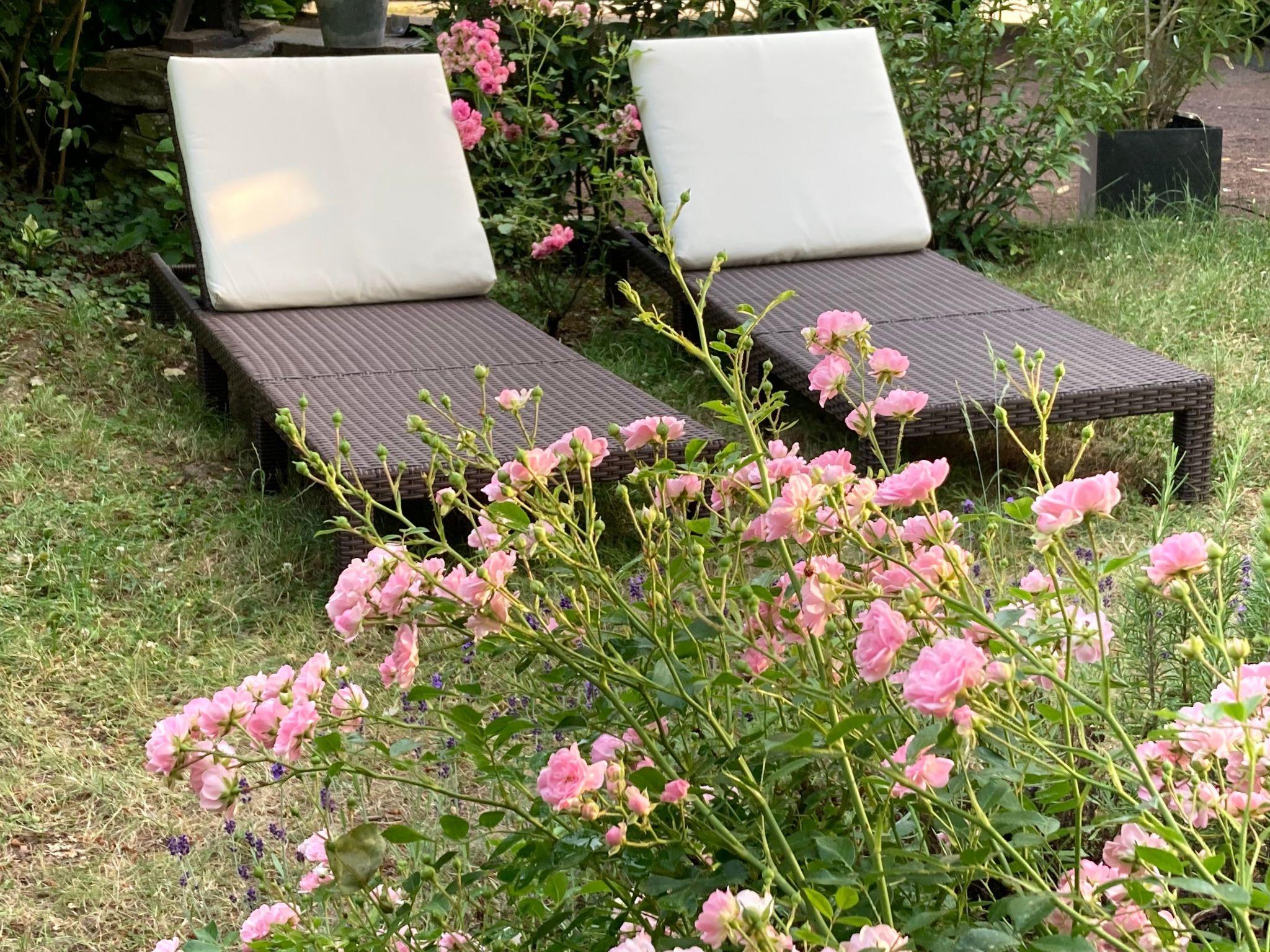 A large garden for your exclusive use, with sunbathing lawn and garden furniture, as well as a sunny, covered seating area invites you to enjoy a barbecue (barbecue available) and romantic evenings.