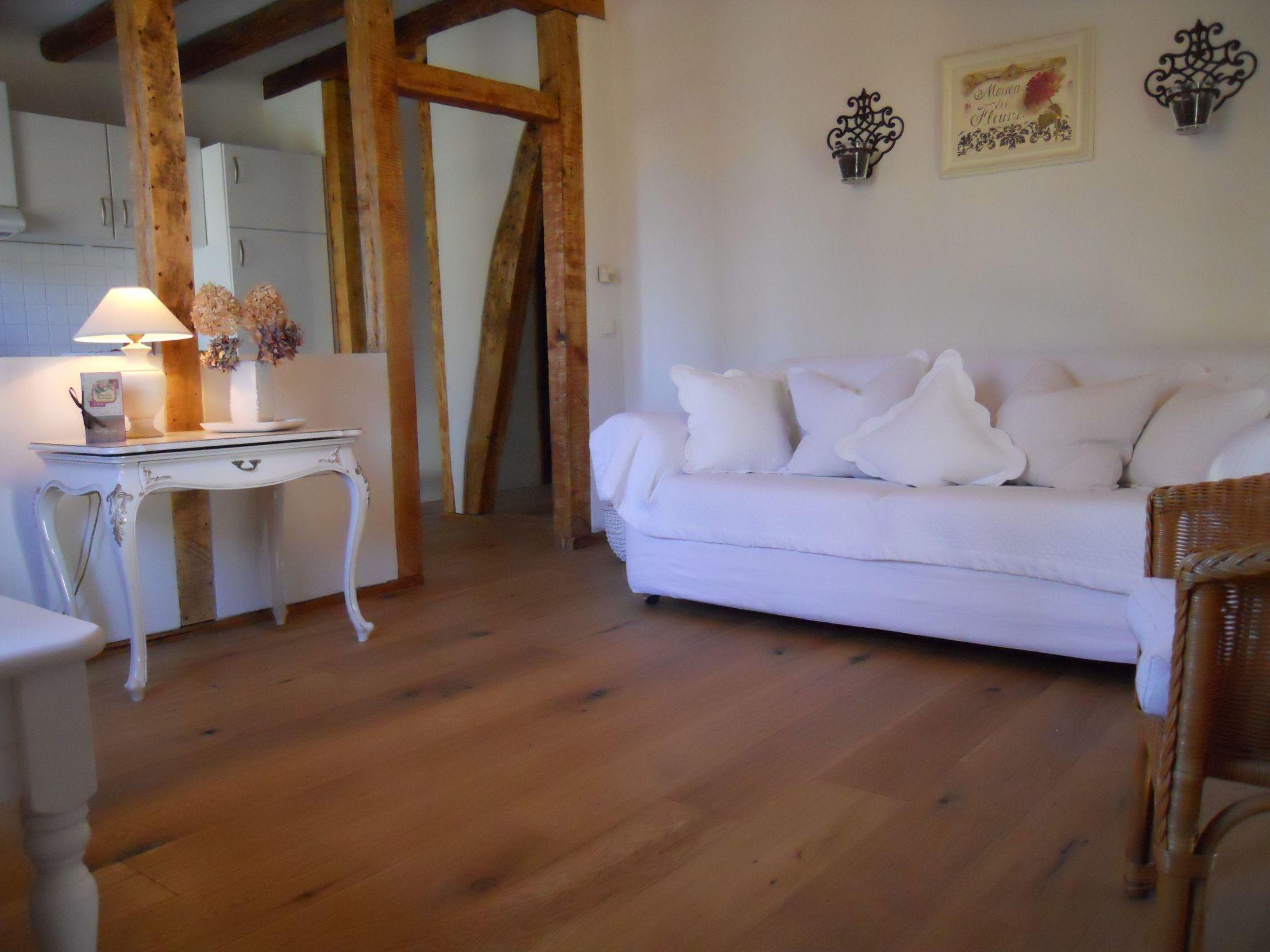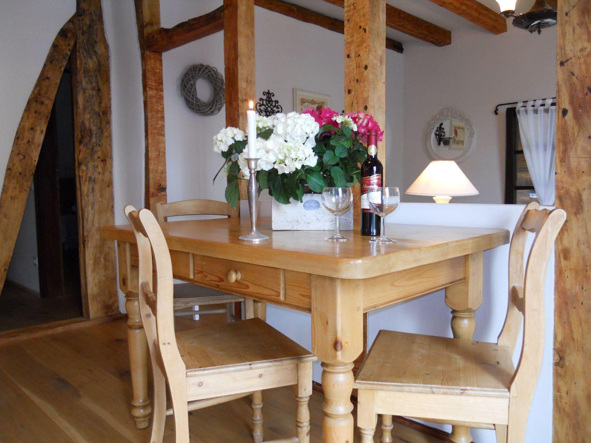 We offer you a cosy 2-room non-smoking flat in country house style, 55 m² in size, max. up to 4 persons, with parquet floor, underfloor heating, W-lan and satellite TV. One bedroom with 1,60m. Double bed and a living room with a pull-out sofa bed for 2 persons. The kitchen is fully equipped with kettle, coffee machine, dishwasher, toaster and a cooker (ceramic hob/oven), modern bathroom with walk-in shower.