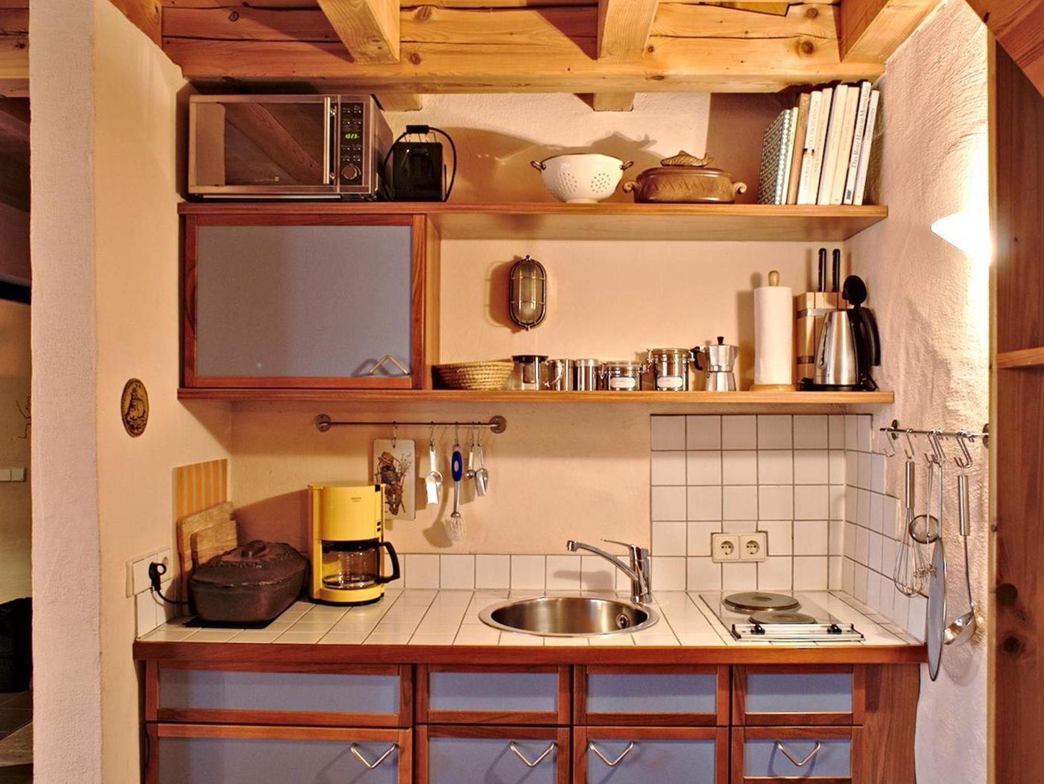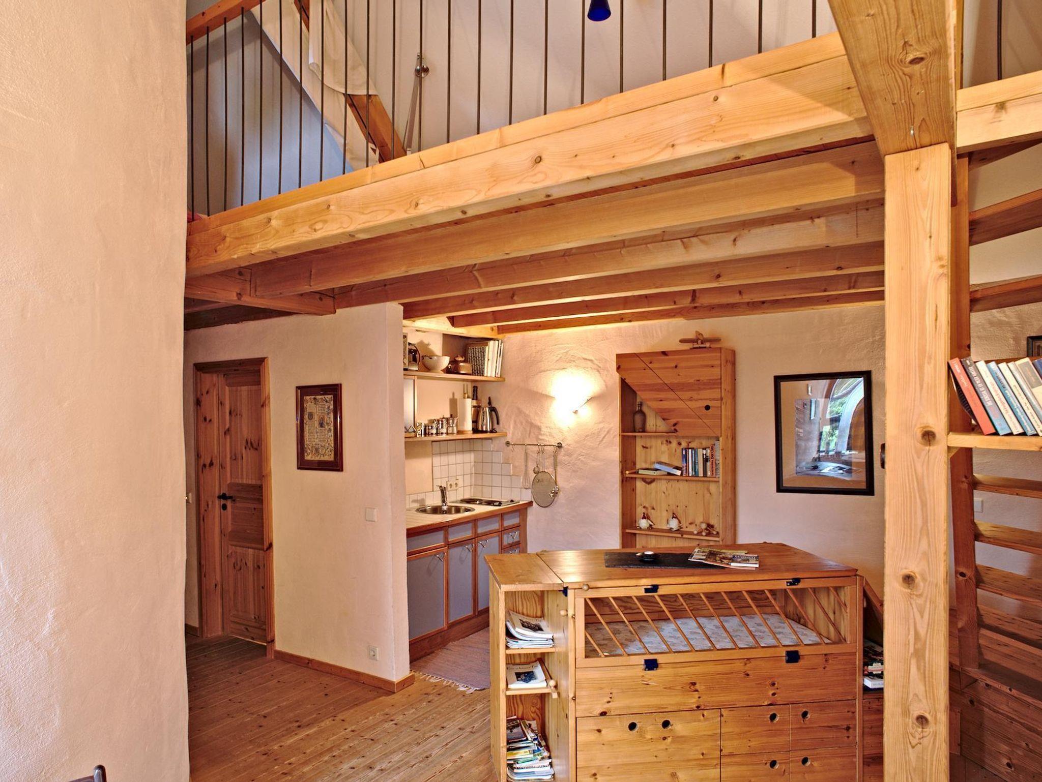 Unser Appartement für 2 Personen ist ca. 35 m² groß. Es verfügt über einen Wohnraum mit komplett ausgestatteter Küchenzeile, Schlafgalerie mit franz. Bett, einem Bett für Kleinkinder (1,20 m), Badezimmer mit DUsche /WC. Zur Schlafgalerie führt eine steile/enge Treppe.