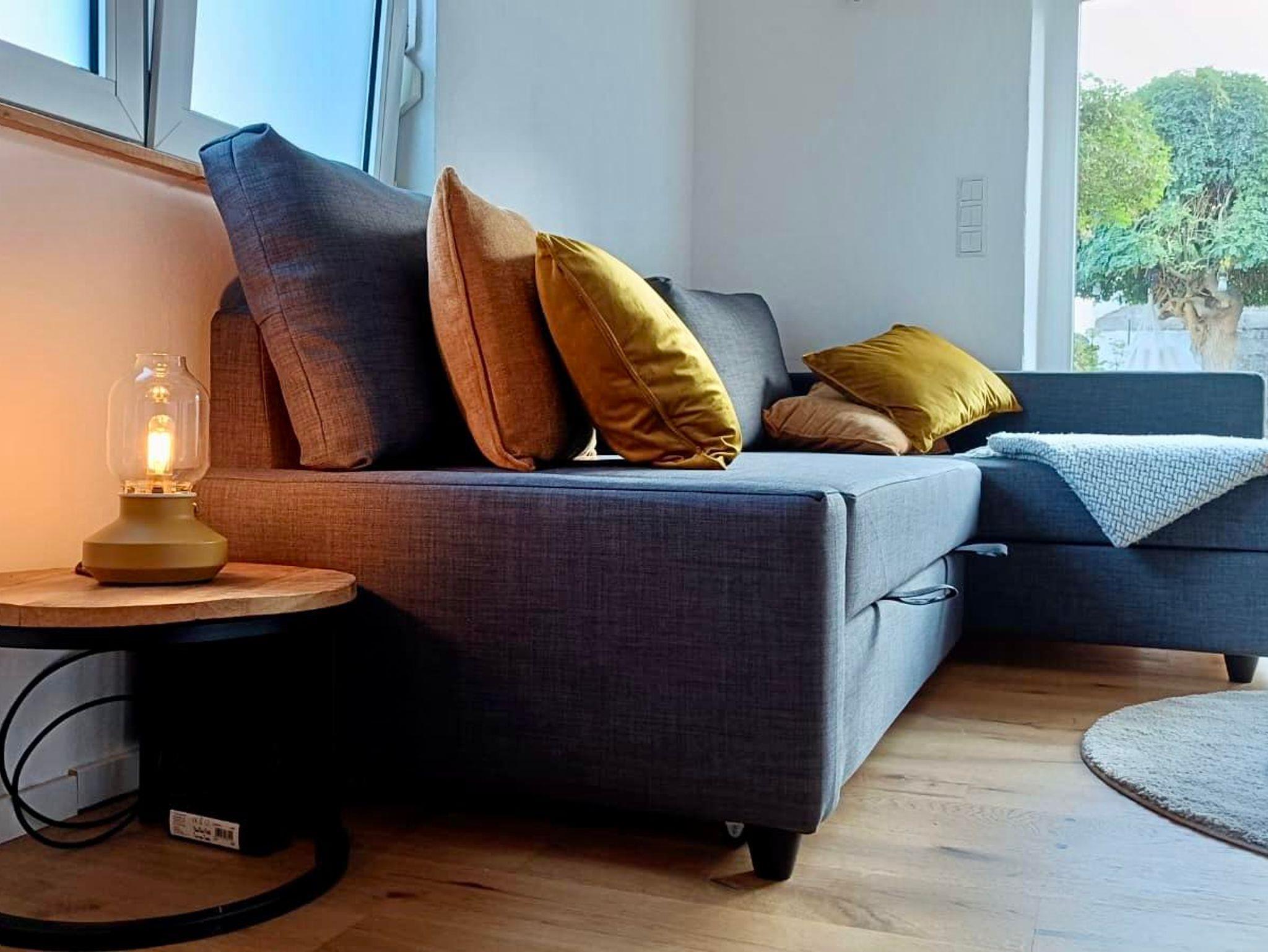 Die Ferienwohnung beinhaltet ein Schlafzimmer mit Doppelbett, ein Wohnzimmer mit Schlafsofa, eine Küche mit Esstisch und ein Bad. Im Außenbereich stehen ein Stellplatz, eine Garage für z. B. Motorrad oder Fahrrad und eine Sitzecke mit Grill im Garten zur Verfügung.