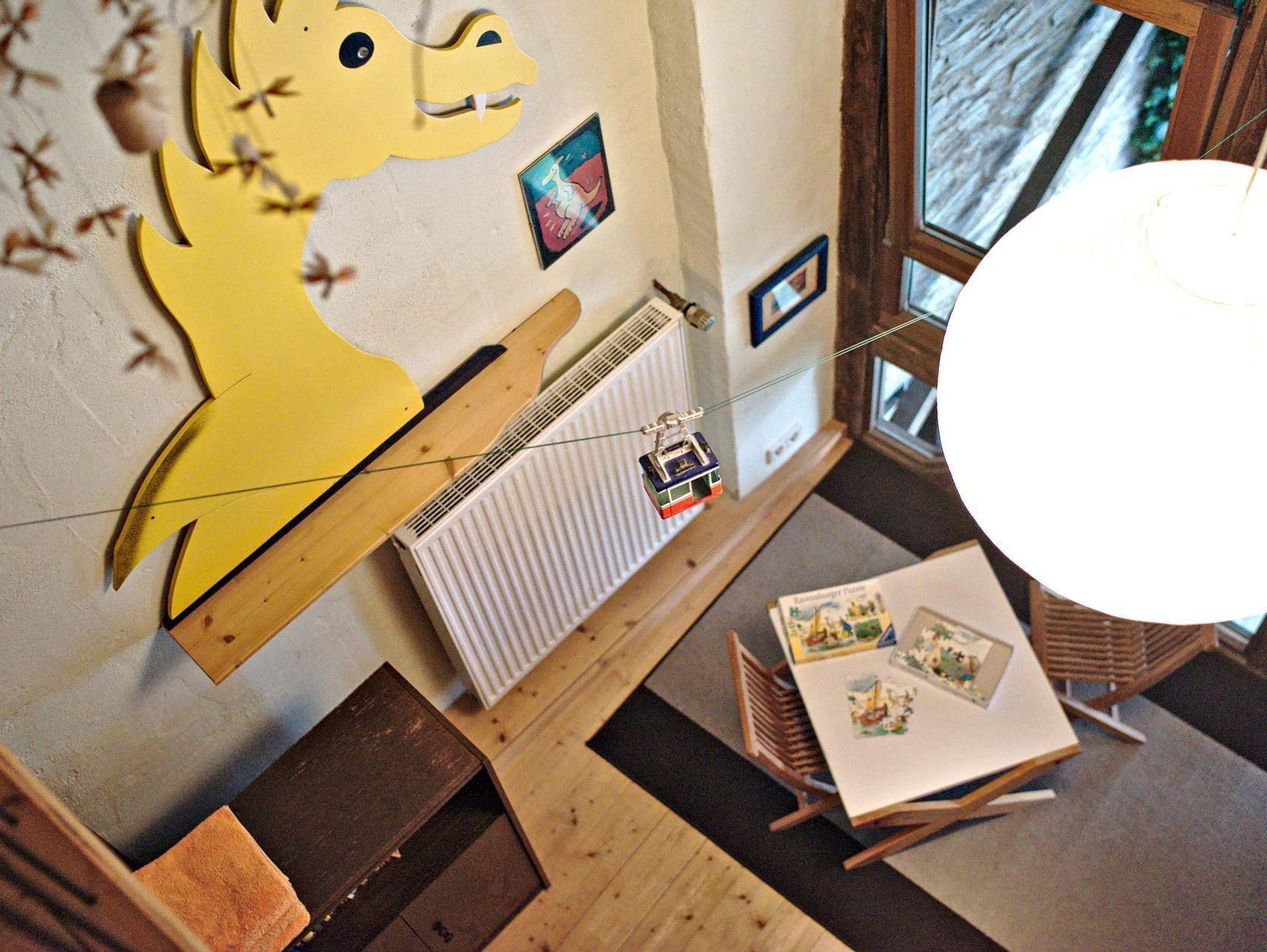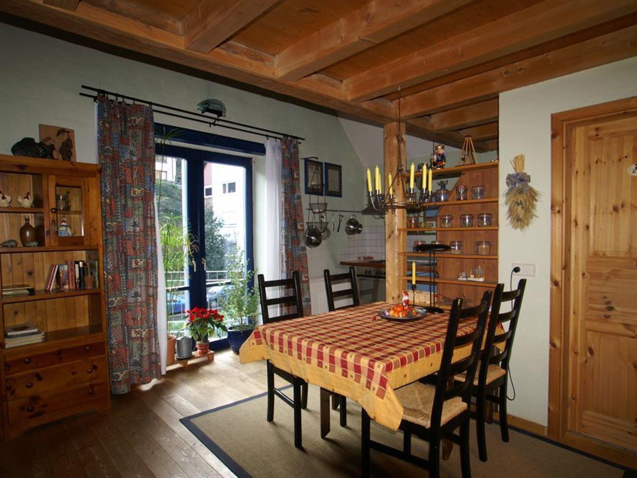 Die Wohnung ist ca. 65 m² groß. Sie verfügt über ein Elternschlafzimmer mit französischem Bett, einem Kinderzimmer mit Etagenbett, einem Essbereich mit komplett eingerichteter Küche und einer Wohngalerie mit Sofa, 2-Sitzer, Sessel, Leselampe und SAT-TV. Zur Wohngalerie führt eine eine steile/enge Treppe. Hier fühlen sich Kinder besonders wohl, denn an jeder Ecke gibt es Neues zu entdecken. Eine eigene Galerie, einen Aufzug, Spielsachen und die schönsten Kinderbücher halten wir für sie bereit. Alle unsere Ferienwohnungen sind mit einem Holzfußboden ausgestattet. Eine moderne, voll eingerichtete Küche und eine harmonisch ausgewählte Einrichtung machen sie behaglich. Kaffeemaschine, Toaster, Telefon, Sat-TV, CD-Player und kostenloses WLAN gehören genauso dazu wie die Möglichkeit im gleichen Hause Waschmaschine und Trockner zu nutzen. Für alle Gäste werden Bettwäsche, Hand- und Küchentücher zur Verfügung gestellt.