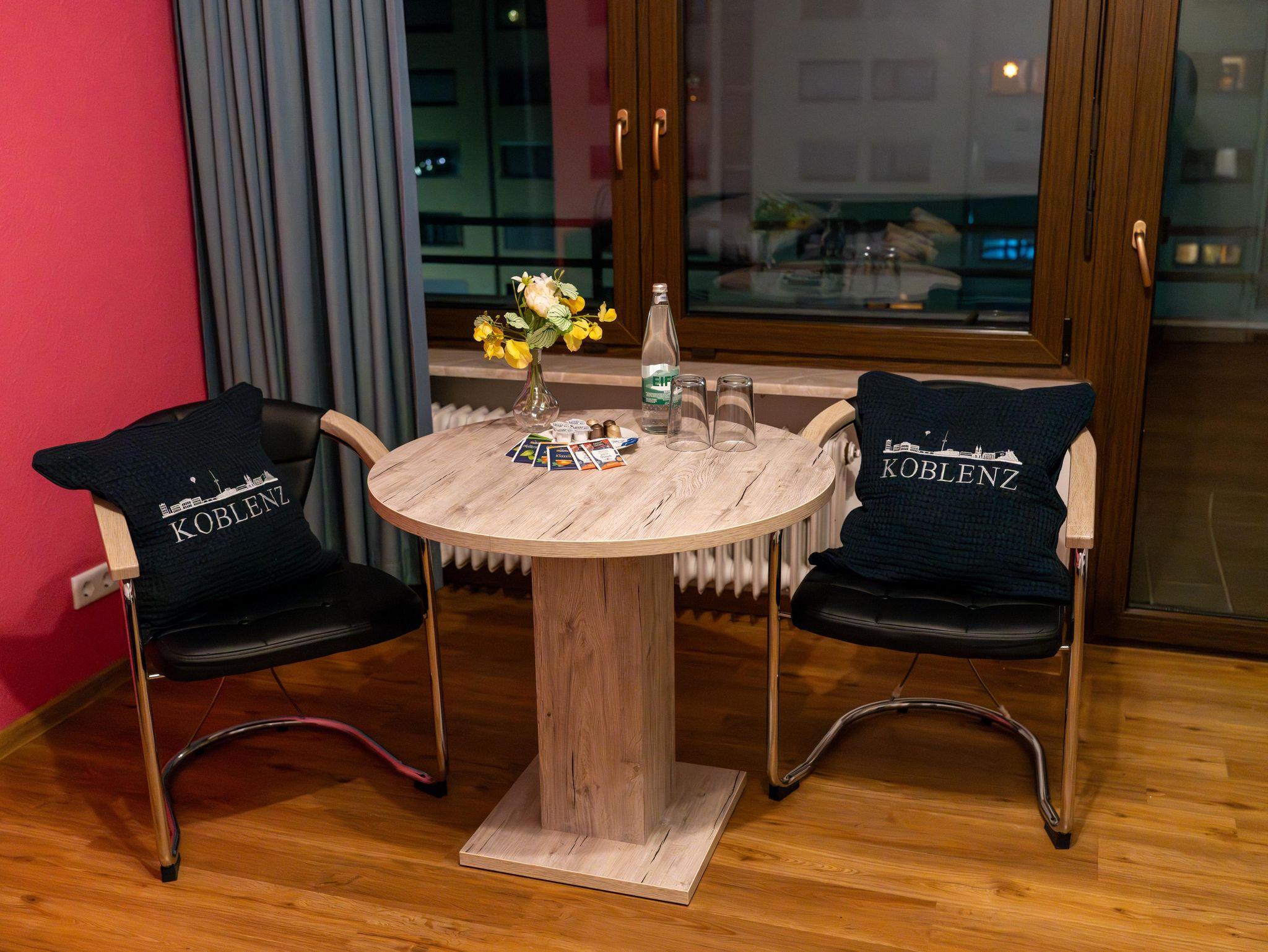 Willkommen in der 25 m² großen Ferienwohnung „RheinmeetsMosel“, ideal gelegen in der Nähe des Deutschen Ecks und direkt an der Rheinterrasse.Die Ferienwohnung „RheinmeetsMosel“ befindet sich in einer der begehrtesten Lagen von Koblenz, nur wenige Schritte vom Deutschen Eck entfernt. Hier, wo Rhein und Mosel zusammenfließen, erwartet Sie eine einzigartige Mischung aus Geschichte, Kultur und Natur. Sehenswürdigkeiten in der Nähe Das Deutsche Eck ist ein weltbekanntes Wahrzeichen, an dem die imposante Kaiser-Wilhelm-Statue thront. Von hier aus haben Sie eine beeindruckende Aussicht über die Flusslandschaft und können entspannt entlang der Rheinpromenade spazieren. In wenigen Minuten erreichen Sie die historische Altstadt von Koblenz mit ihren charmanten Gassen, Cafés und Boutiquen. Besuchen Sie die Liebfrauenkirche oder das Forum Confluentes, das unter anderem das Mittelrhein-Museum beherbergt. Ein absolutes Highlight ist die Festung Ehrenbreitstein, die Sie bequem mit der Seilbahn über den Rhein erreichen. Hier erwartet Sie nicht nur ein faszinierendes Stück Geschichte, sondern auch ein unvergleichlicher Blick auf Koblenz und die umliegende Region. Freizeit und Natur Die Umgebung bietet zahlreiche Freizeitmöglichkeiten: Genießen Sie eine Schifffahrt auf Rhein oder Mosel, erkunden Sie die gut ausgebauten Radwege oder wandern Sie auf einem der zahlreichen Premiumwanderwege, wie dem Rheinsteig oder dem Moselsteig. Die malerische Weinregion ist ideal für Weinliebhaber, die die regionalen Weine direkt beim Winzer verkosten möchten. Anfahrt mit der Bahn Dank der zentralen Lage ist die Ferienwohnung problemlos mit der Bahn erreichbar. Der Hauptbahnhof Koblenz liegt etwa 2,5 Kilometer entfernt. Von dort aus können Sie mit einer der zahlreichen Buslinien in wenigen Minuten die Haltestelle nahe der Rheinterrasse erreichen. Alternativ ist die Wohnung auch zu Fuß in etwa 30 Minuten erreichbar, ein angenehmer Spaziergang entlang der Rheinpromenade. Restaurants und Einkaufsmöglichkeiten In unmittelbarer Nähe finden Sie eine Vielzahl an Restaurants, die von gehobener Küche bis zu regionalen Spezialitäten reichen.