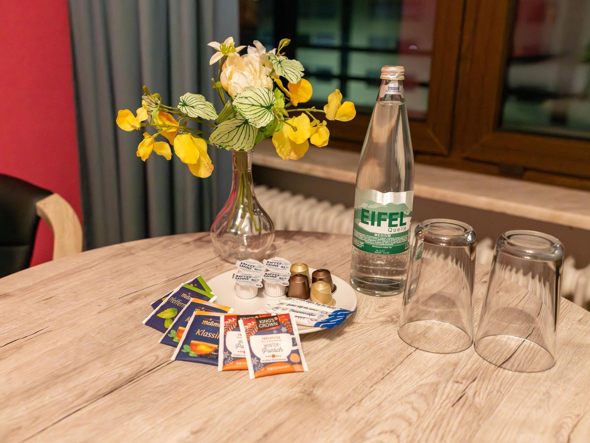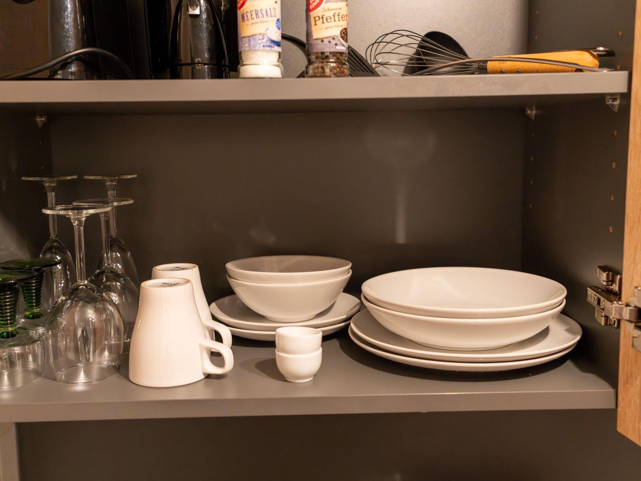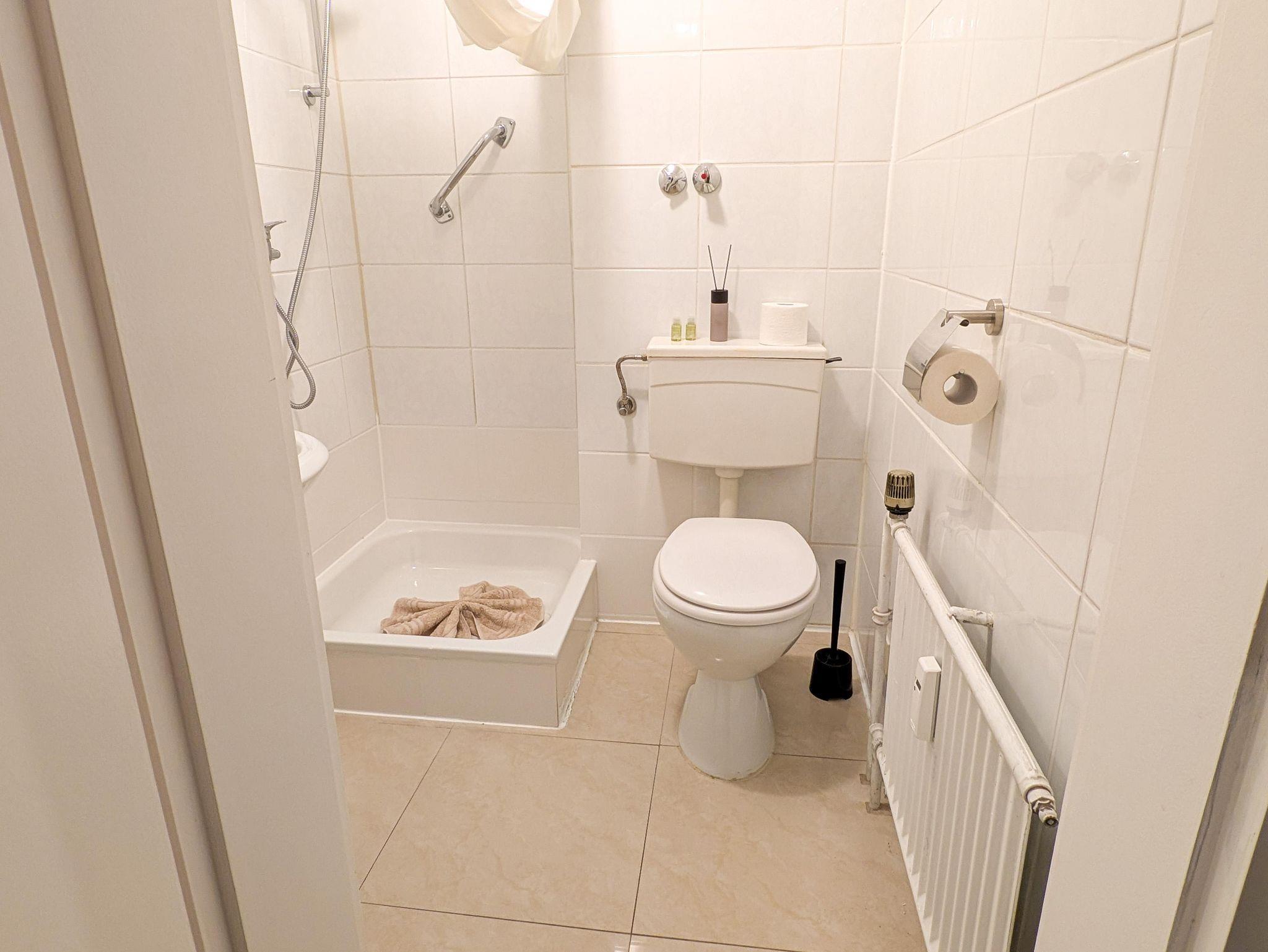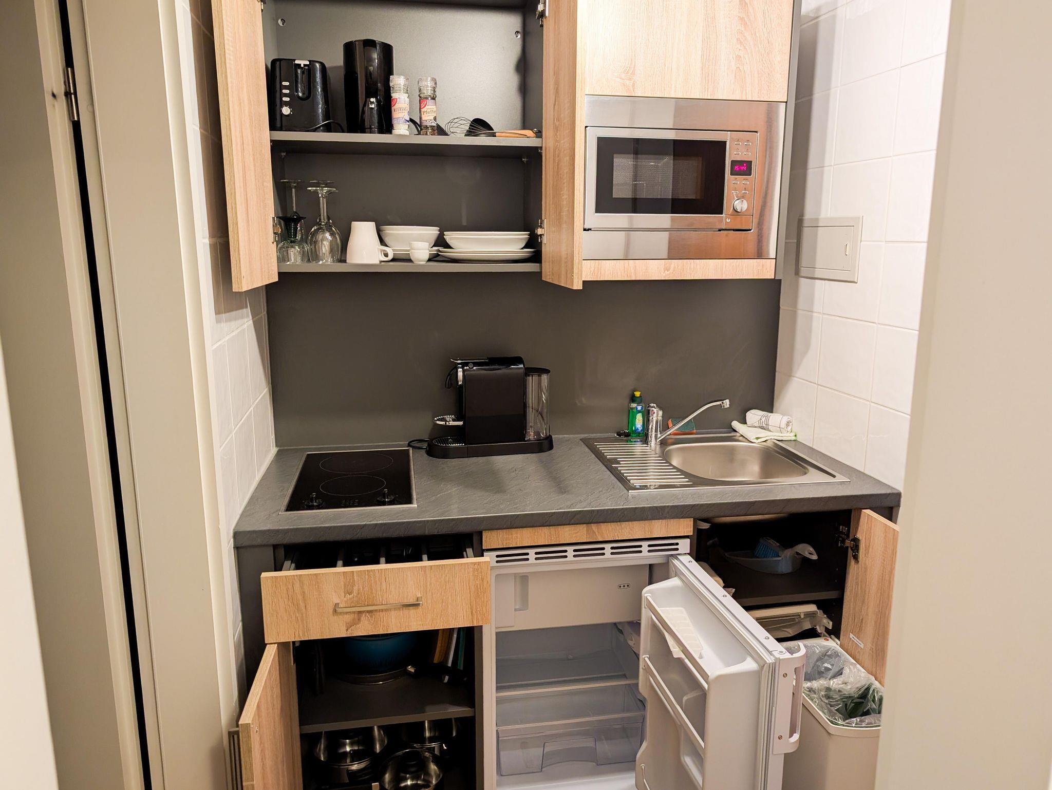 Diese modern eingerichtete Unterkunft ist perfekt für Paare, Familien mit einem Baby, Alleinreisende und Geschäftsreisende geeignet und bietet alles, was Sie für einen komfortablen Aufenthalt benötigen. Die Wohnung verfügt über ein bequemes Doppelbett, einem Babybeistellbett auf Anfrage, einen geräumigen Schrank sowie einen Flachbild-TV für entspannte Stunden. Ein Esstisch und ein separater Arbeitstisch sorgen für Flexibilität, sei es zum Essen oder für produktives Arbeiten. Die kleine, aber voll ausgestattete Küchenzeile beinhaltet einen Kühlschrank, eine Nespresso-Kaffeemaschine, Wasserkocher, Toaster, Kochutensilien und alles Nötige für die Zubereitung Ihrer Mahlzeiten. Das Badezimmer bietet eine moderne Dusche, frische Handtücher und inklusive Bettwäsche, damit Sie sich wie zu Hause fühlen. Ein weiteres Highlight ist der Balkon mit Tisch und Stühlen, wo Sie die Aussicht und die frische Luft genießen können. Besonders hervorzuheben ist der schnelle Internetanschluss, der speziell Geschäftsreisenden und digitalen Nomaden optimale Bedingungen bietet.