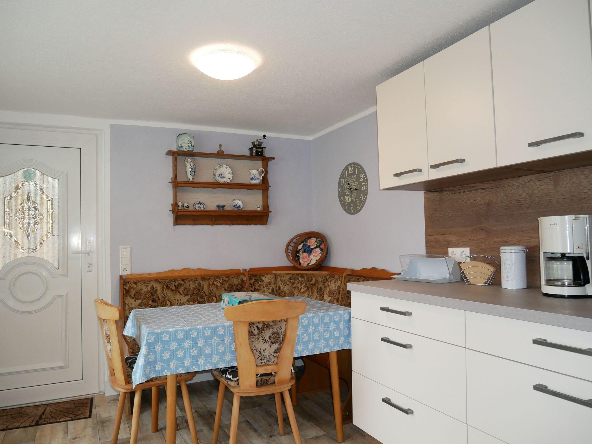 Im Erdgeschoss des Hauses befindet sich eine separate Küche, diese ist voll ausgestattet mit Toaster, Wasserkocher, Kaffeemaschine, Mixer, Kühlschrank mit Tiefkühlfach, Mikrowelle, Herd, Backofen, Spülmaschine und Friteuse.
