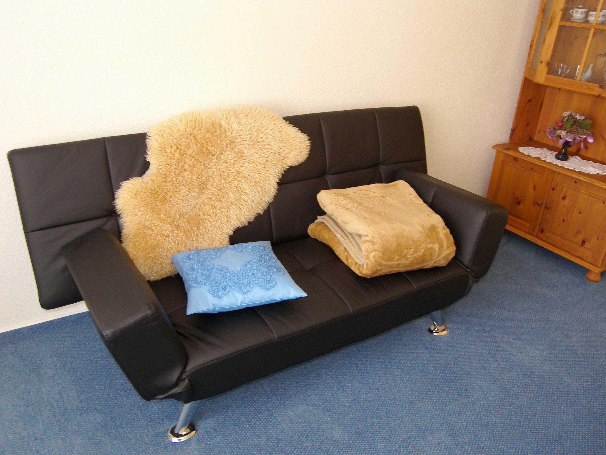 Die gemütlich und zweckmäßig eingerichtete Ferienwohnung ist ca. 35 qm groß und befindet sich in einem Anbau auf dem Hof der Vermieter. Über einen kleinen Flur gelangen Sie in den kombinierten Wohn- und Schlafbereich mit einem Doppelbett, einer Schlafcouch, Anbauwand, Flachbild-TV und CD-Radio. Die Küche ist ausgestattet mit Elektroherdplatte und Kühlschrank mit Tiefkühlfach, sowie mit einem Esstisch mit 3 Stühlen. Das Bad verfügt über Dusche/ WC und Fön. An der Ferienwohnung befindet sich eine Terrasse mit Gartenmöbeln und Grillmöglichkeit. Die Bettwäsche ist bereits im Gesamtpreis enthalten. Handtücher sind bitte selbst mitzubringen. Diese werden nicht zur Verfügung gestellt. Ein Parkplatz für Ihren PKW ist gegenüber vom Grundstück kostenfrei vorhanden.