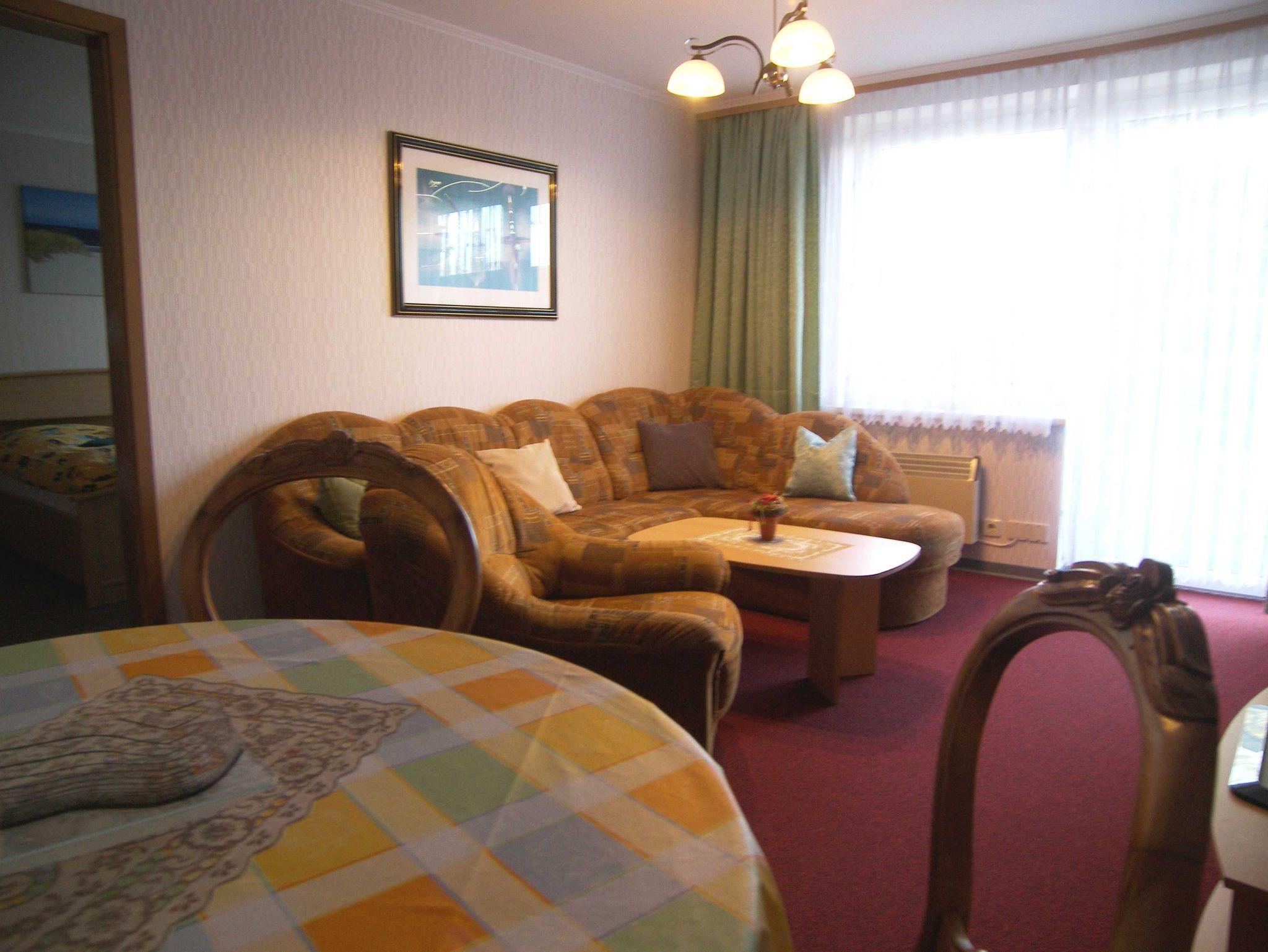 Die gemütliche 2-Raum-Ferienwohnung ist ca. 46qm groß und und für 2 bis 4 Personen geeignet. Das Wohnzimmer ist mit einer gemütlichen Couchecke, Sat-TV und Radio sowie einem Esstisch ausgestattet. Die Pantry-Küche verfügt über einen 2-Platten-Herd, Kühlschrank mit Gefrierfach, Kaffeemaschine, Wasserkocher und Toaster. Das separate Schlafzimmer ist mit einem Doppelbett und einem Etagenbett ausgestattet. Das Badezimmer verfügt über Dusche/WC. Vom Wohnzimmer kommen Sie direkt auf eine kleine Wiese mit Strandkorb, Spielgeräten und einem Gartenpavillon mit Gartenmöbeln. Ein Grill für gemütliche Sommerabende ist ebenfalls vorhanden.