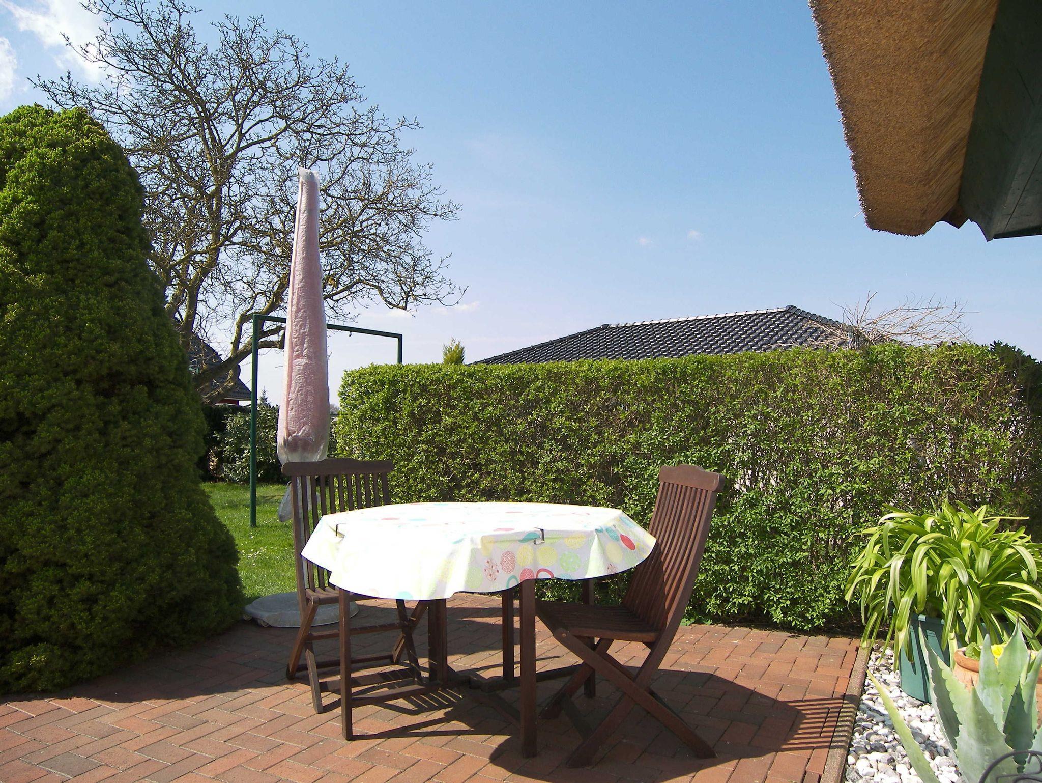 Das gemütlich eingerichtete Nichtraucher-Reetdach-Ferienhaus ist ca. 40qm groß und für bis zu 3 Erwachsene und 1 Kleinkind bis 3 Jahre geeignet. Es verfügt über ein separates Schlafzimmer mit Doppelbett, einem Einzelbett und einem geräumigen Kleiderschrank (ein Kinderreisebett kann im Schlafzimmer bequem aufgestellt werden). Im Flurbereich befindet sich eine gut ausgestattete Pantryküche mit 2-Platten-Herd, Kühlschrank mit Gefrierfach, Kaffeemaschine, Toaster, Wasserkocher und Mikrowelle mit Grill. Im Wohnzimmer befindet sich eine gemütliche Couchsitzecke mit Tisch, die Couch ist ausziehbar (140x200) und bietet für eine Person eine Aufbettung. Des Weiteren ist ein Flat-TV, Radio und ein CD-Player vorhanden. Das Badezimmer ist mit einer Dusche ausgestattet. Das WC ist separat. Vor dem Ferienhaus gibt es eine sonnige möbelierte Terrasse, auf der auch gegrillt werden darf. Im Garten befindet sich eine Schaukel für die kleinen Gäste. Ein Pkw-Stellplatz, Bettwäsche, Endreinigung sind im Preis inklusive. Ein Kinderreisebett und Hochstuhl sind auf Anfrage kostenfrei verfügbar. Handtücher sind bitte mitzubringen.
