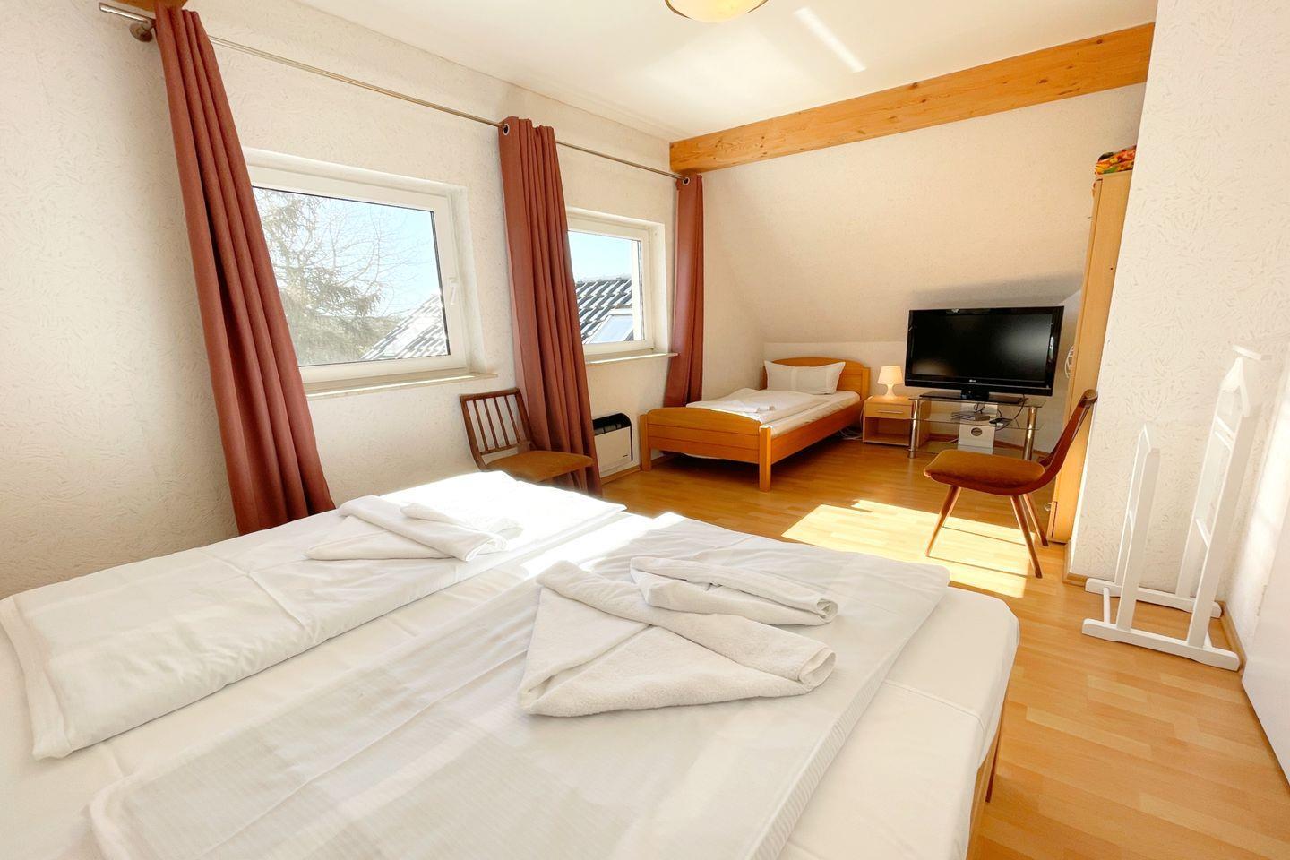 Die beiden Schlafzimmer sind mit Laminat ausgelegt und bieten ausreichend Ruhe und Komfort für die Nachtruhe. Das Haus verfügt über zwei Badezimmer mit Dusche – jeweils mit Waschbecken, WC, Spiegel und Fenster. Bettwäsche, Handtücher und die Erstausstattung sind bereits im Mietumfang enthalten, ebenso ein Wäscheständer, Staubsauger und Geschirrhandtücher für Ihren Aufenthalt.