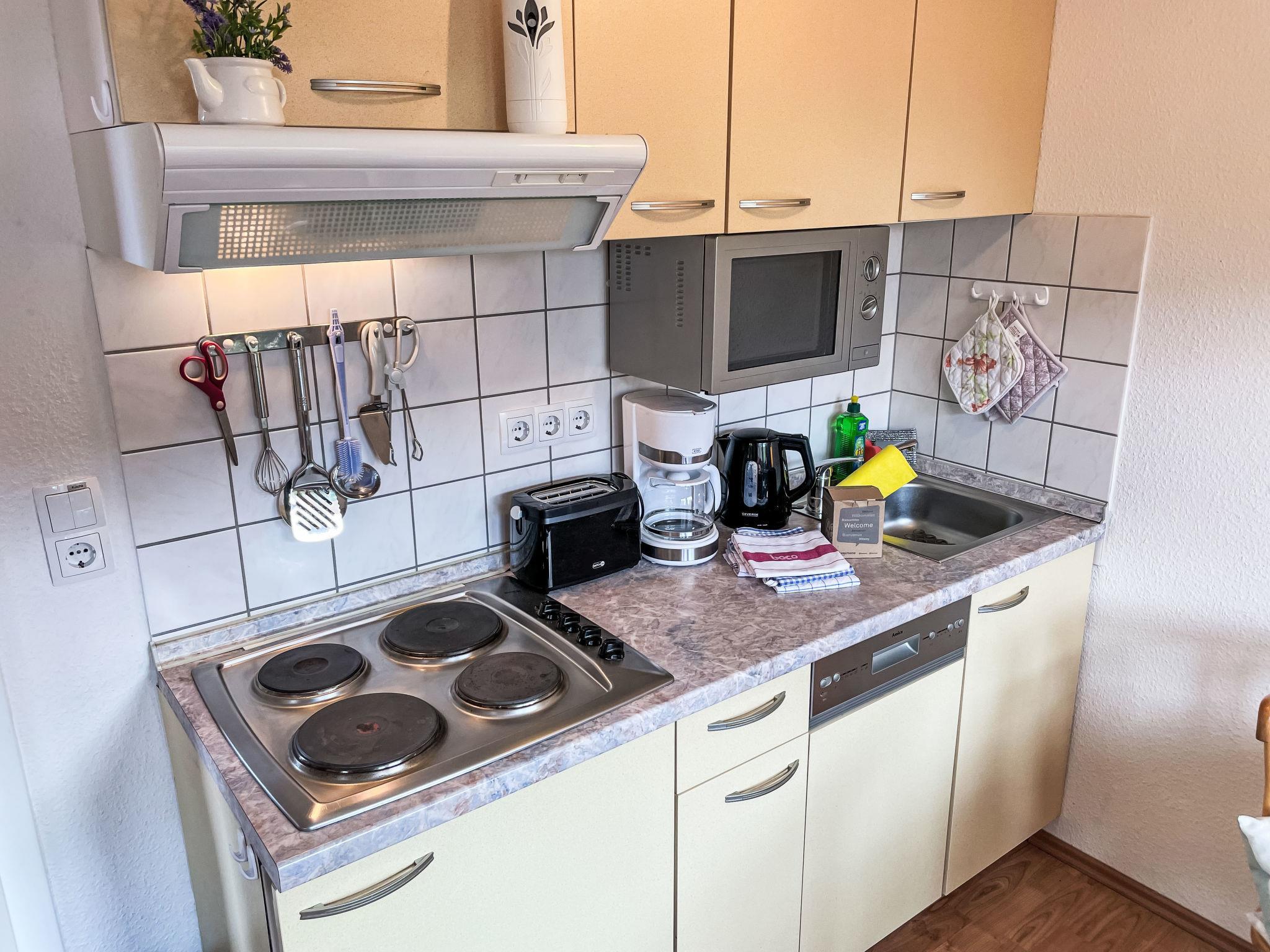 "Henneberg", 2-room apartment 32 m2, on the ground floor. Simple furnishings: living/dining room with 1 sofabed and cable TV (flat screen), radio. 1 room with 1 double bed (140 cm, length 200 cm). Kitchenette (dishwasher, 4 ceramic glass hob hotplates, toaster, kettle, electric coffee machine). Shower/WC. Terrace. Terrace furniture. Facilities: children's high chair, baby cot. Please note: non-smokers only. Smoke alarm.