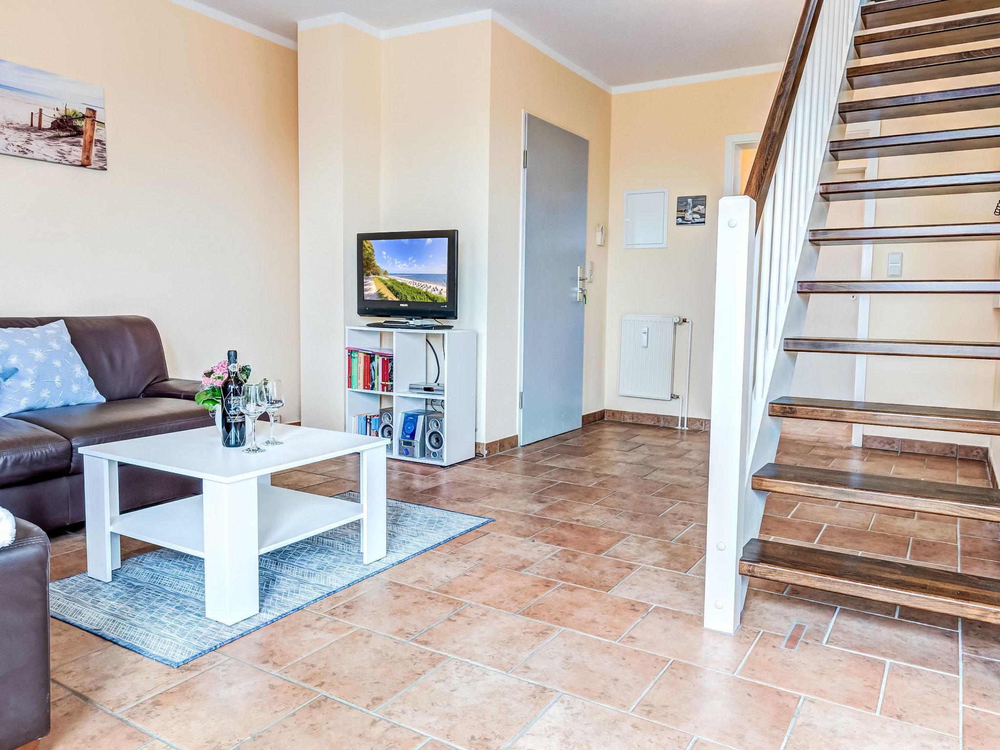 "Ankerplatz", 2-room apartment 70 m2 on 2 levels on 1st floor. Beautiful and cosy furnishings: living/dining room with cable TV (flat screen), radio. Exit to the balcony. 1 room with 1 double bed (180 cm, length 200 cm). Open kitchen (oven, dishwasher, 4 ceramic glass hob hotplates, toaster, kettle, microwave, electric coffee machine). Shower/WC. Top floor: open gallery with sloping ceilings with 1 double bed (180 cm, length 200 cm). Balcony. Balcony furniture. Facilities: children's high chair, baby cot. Internet (WiFi, free). Please note: non-smokers only. Smoke alarm. Instead of an enclosed bedroom, some sleeping areas are located in an open-plan area (gallery, alcove, etc.).