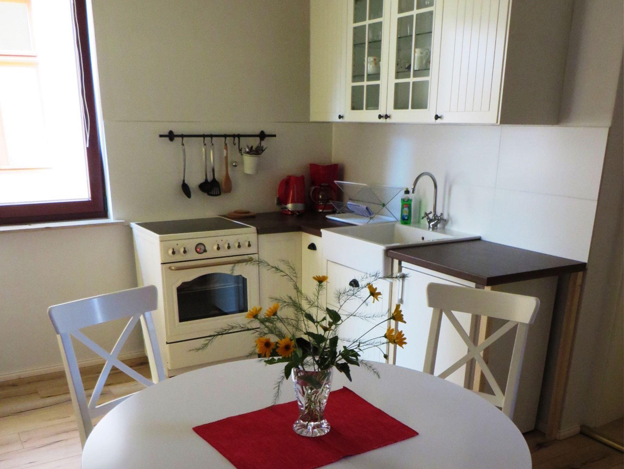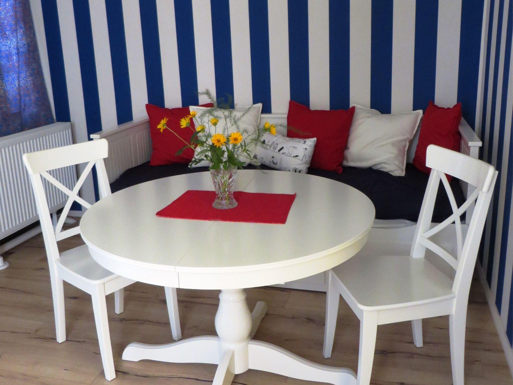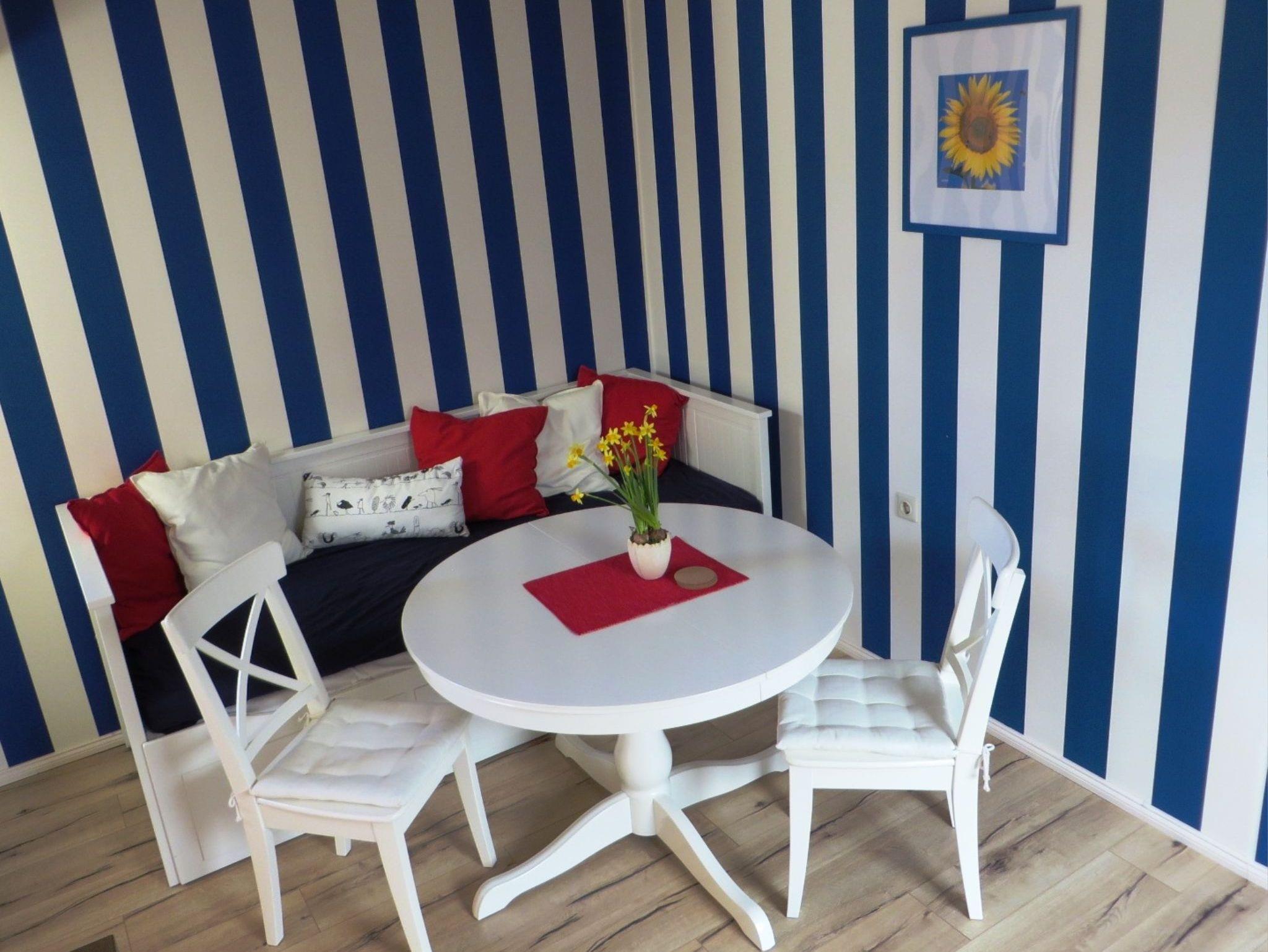 Unsere Ferienwohnung Midsommer ist ca. 35 Quadratmeter groß und im skandinavischen Stil gestaltet, um eine gemütliche Atmosphäre zum Verweilen zu schaffen. Die Küche ist gleichzeitig der Wohnbereich und bietet mit dem Tagessbett nicht nur einen Platz zum Sitzen, Lesen und Spielen, sondern auch eine separate Schlafmöglichkeit. Die Küchenzeile ist gut ausgestattet mit einem Cerankochfeld mit Backofen, einem Kühlschrank mit Gefrierfach, Wasserkocher, Toaster und Kaffeemaschine ? so fehlt es an nichts.