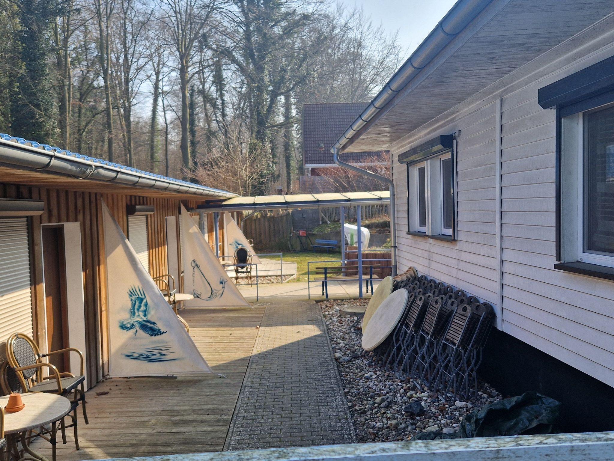 Die Ferienwohnungen sind eine kleine Gruppe von mehreren bungalowähnlichen Wohnungen, die sich einen großen gemeinsamen Terrassenbereich teilen. Die großen Ferienwohnungenn haben je ein Doppelbett, 2 Einzelbetten,1 Schlafsofa und eine Küche. HIer können Sie mit Ihrer großen Familie, den vielen Freunden oder Vereinskollegen gemeinsam und individuell Urlaub machen.